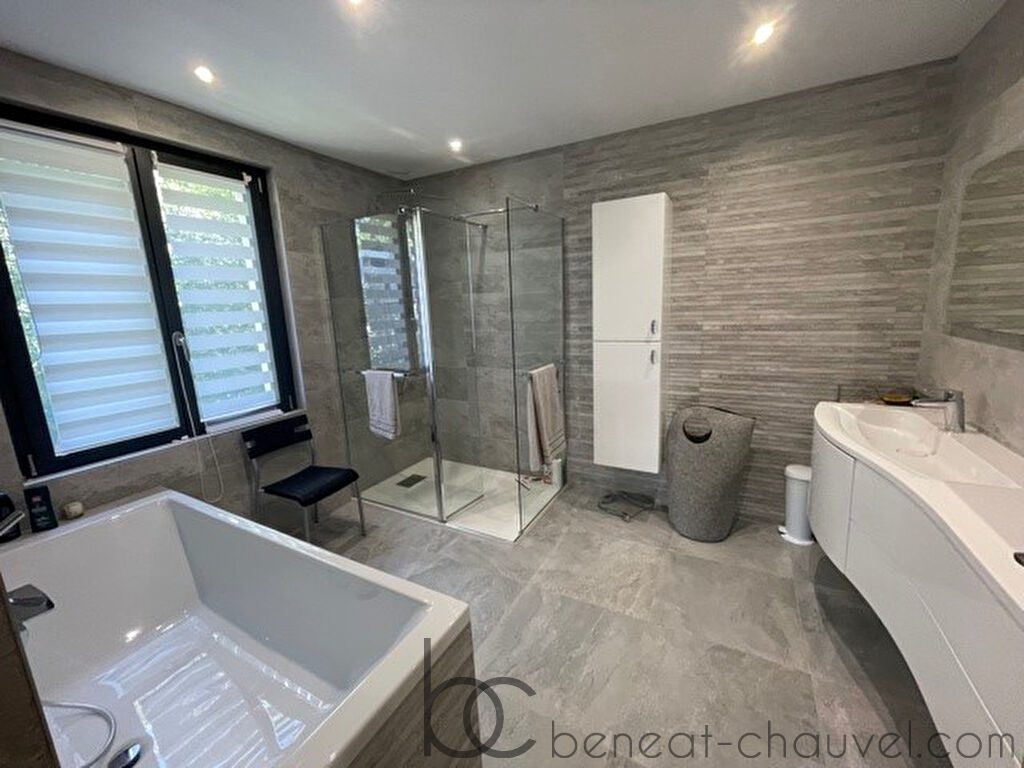 – Au 1er étage: trois chambres dont une avec salle d’eau, wc, salle de bains avec douche .