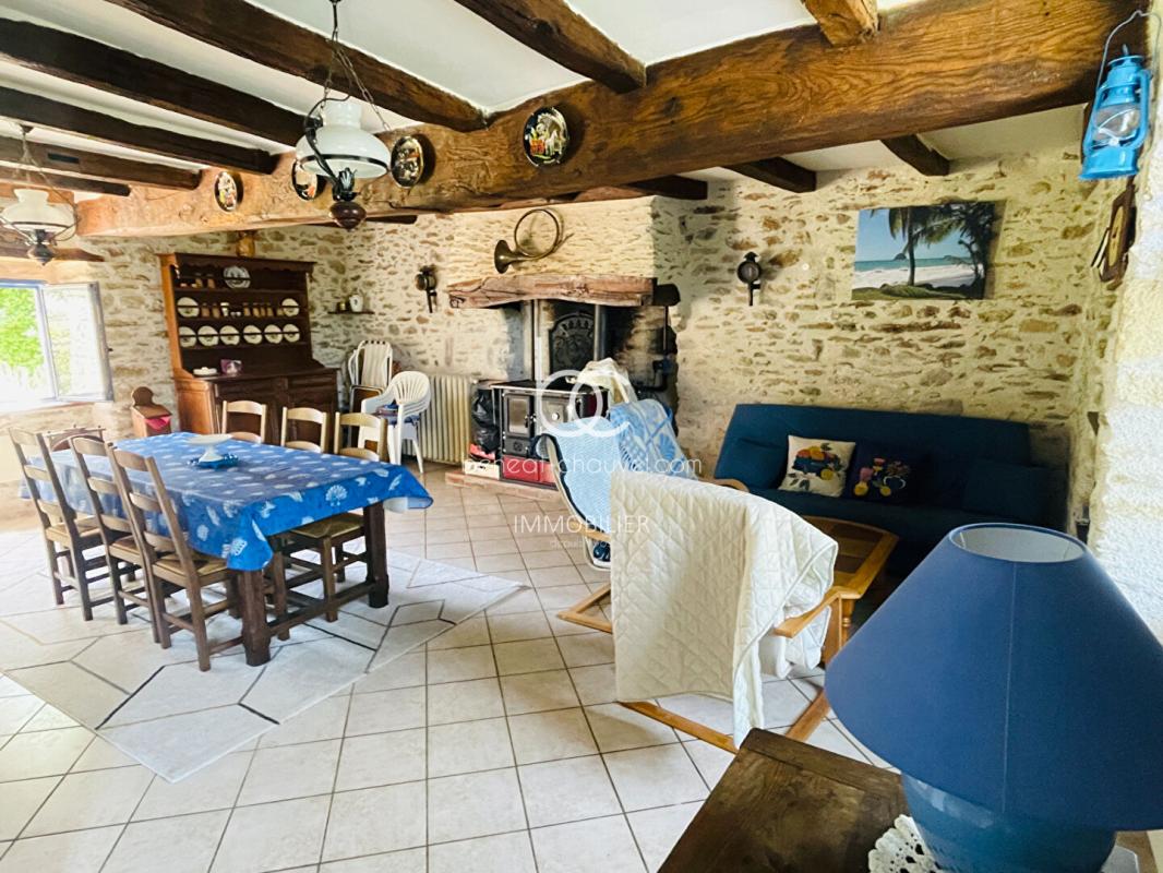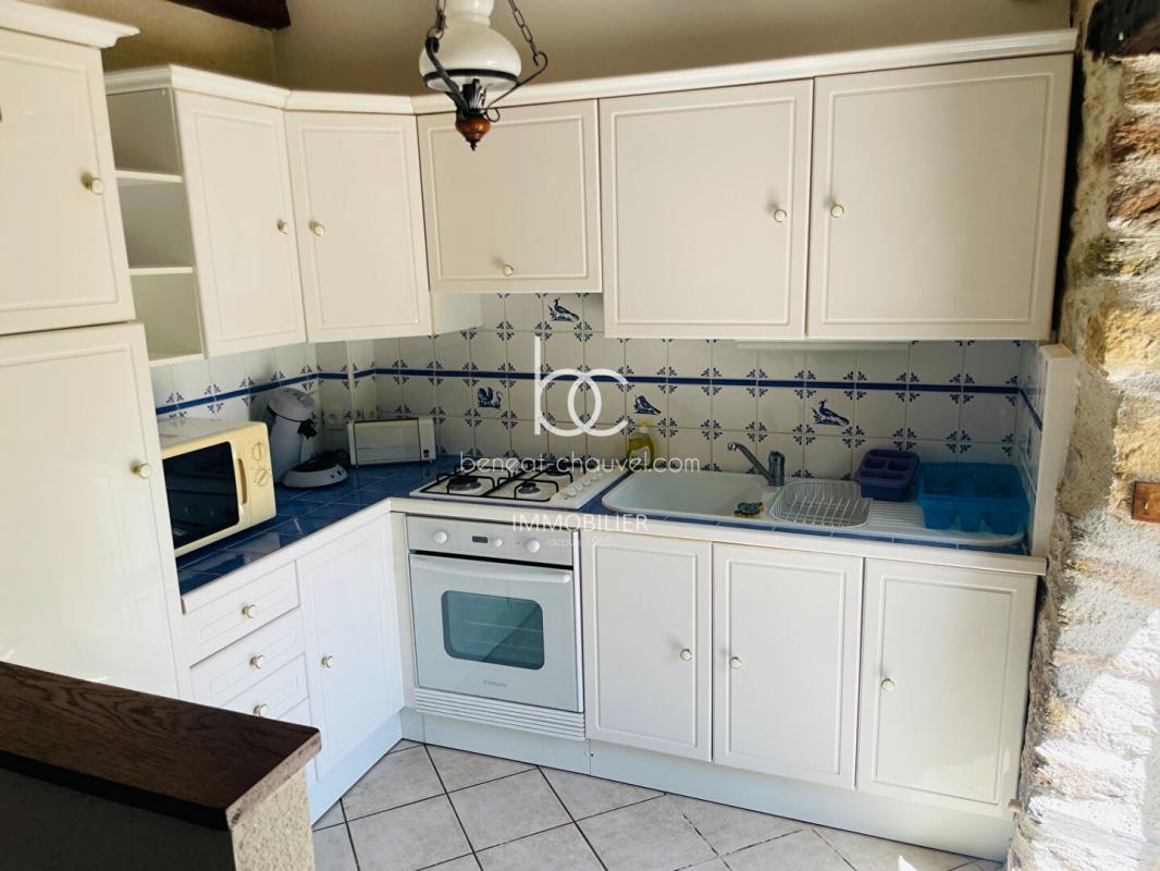 Le Cabinet Bénéat-Chauvel vous propose de venir découvrir cette charmante maison située dans un environnement calme et apaisant. Cette maison en pierre a parfaitement conservée son charme et son authenticité. Elle comprend au rez-de-chaussée : pièce de vie chaleureuse avec cuisinière bois, une cuisine équipée et aménagée et placard.