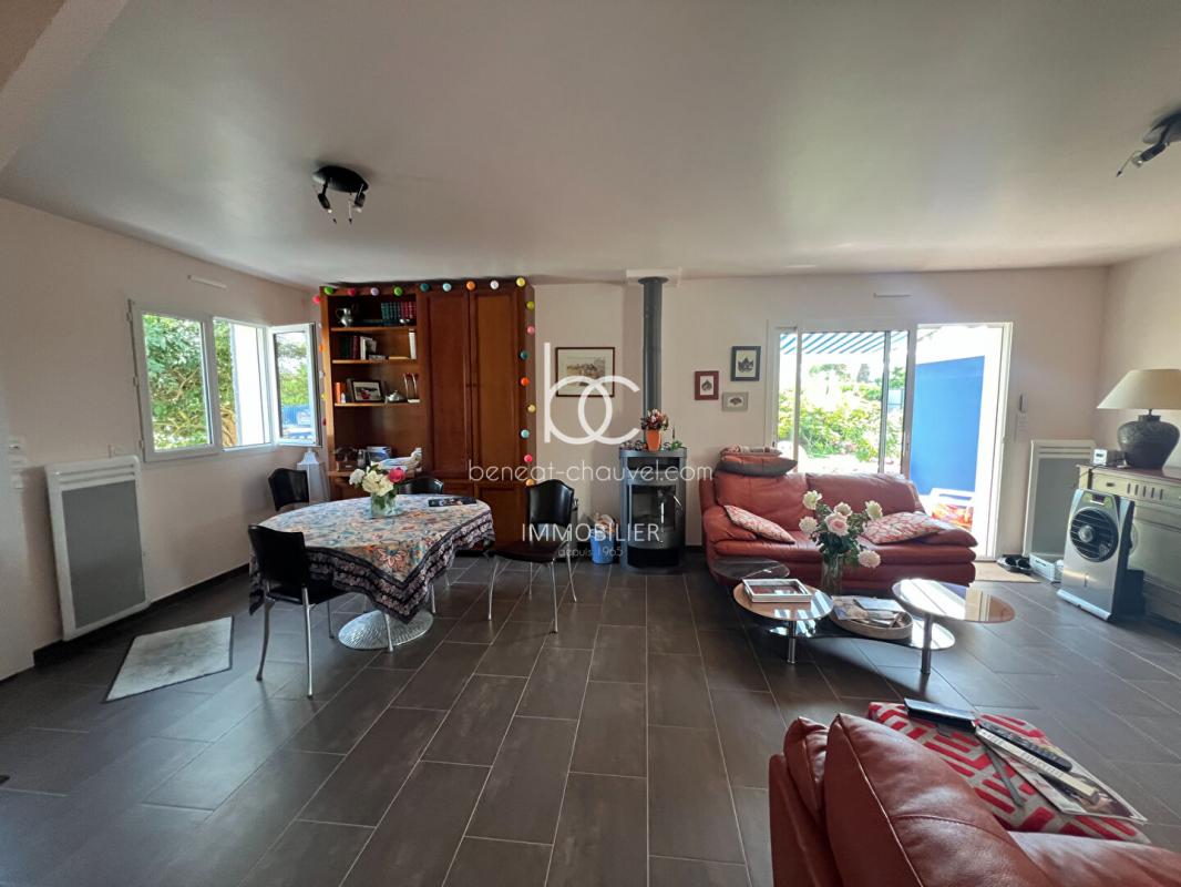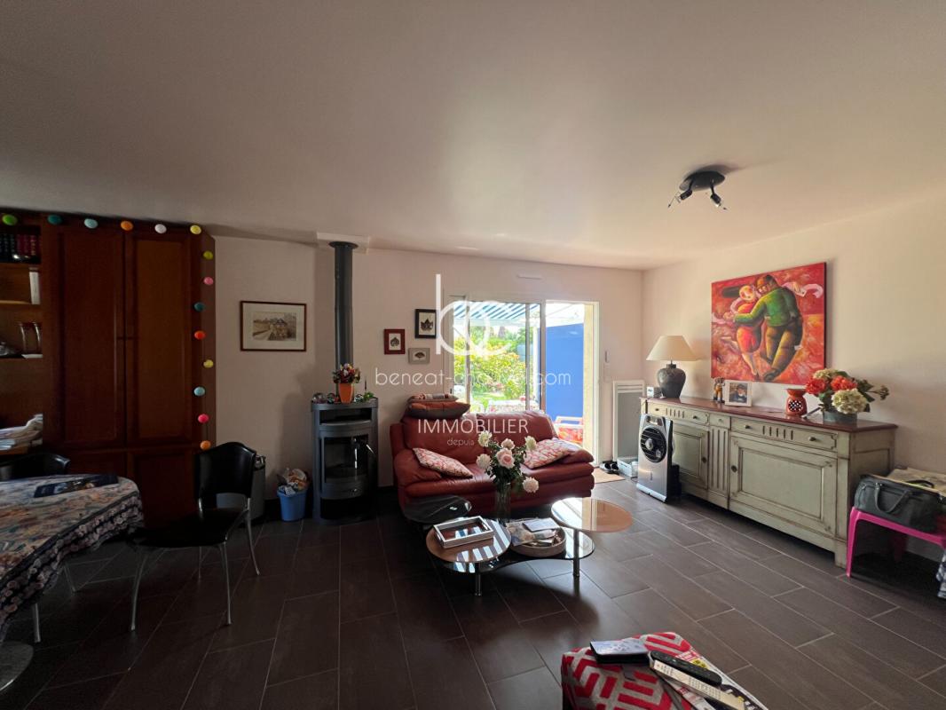 Au rez-de-chaussée, un salon-séjour donnant sur la terrasse, une cuisine aménagée/équipée semi-ouverte, une arrière cuisine, une chambre avec salle d’eau privative, un WC.