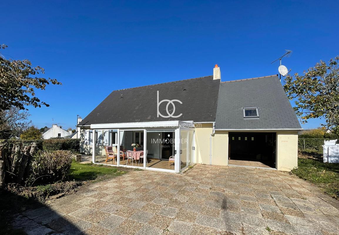 A mi-chemin entre le bourg et la plage des Govelins, une maison de plain-pied comprenant une entrée, un séjour-salon, deux vérandas, une cuisine ouverte, deux chambres, une salle de bains, un WC. Garage attenant avec grenier.