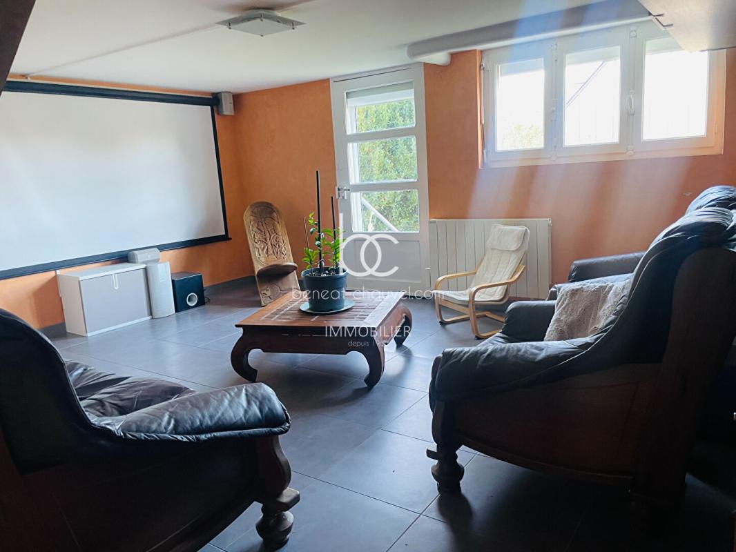 – Rez-de-chaussée : Un espace dédié à la détente avec une véritable salle de cinéma, une chambre avec placards, une salle d’eau avec WC et un garage.