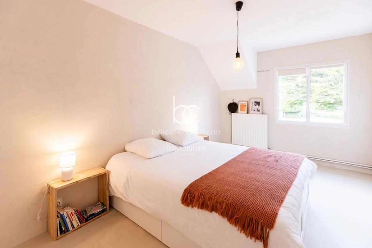L’étage est dédié à l’espace nuit et démontre la capacité d’accueil exceptionnelle de cette demeure : un couloir dessert trois grandes chambres supplémentaires, ainsi qu’une suite parentale complète avec sa propre salle d’eau. Une salle de bains indépendante et un W.C complètent cet étage. La maison bénéficie également d’une cave en sous-sol.