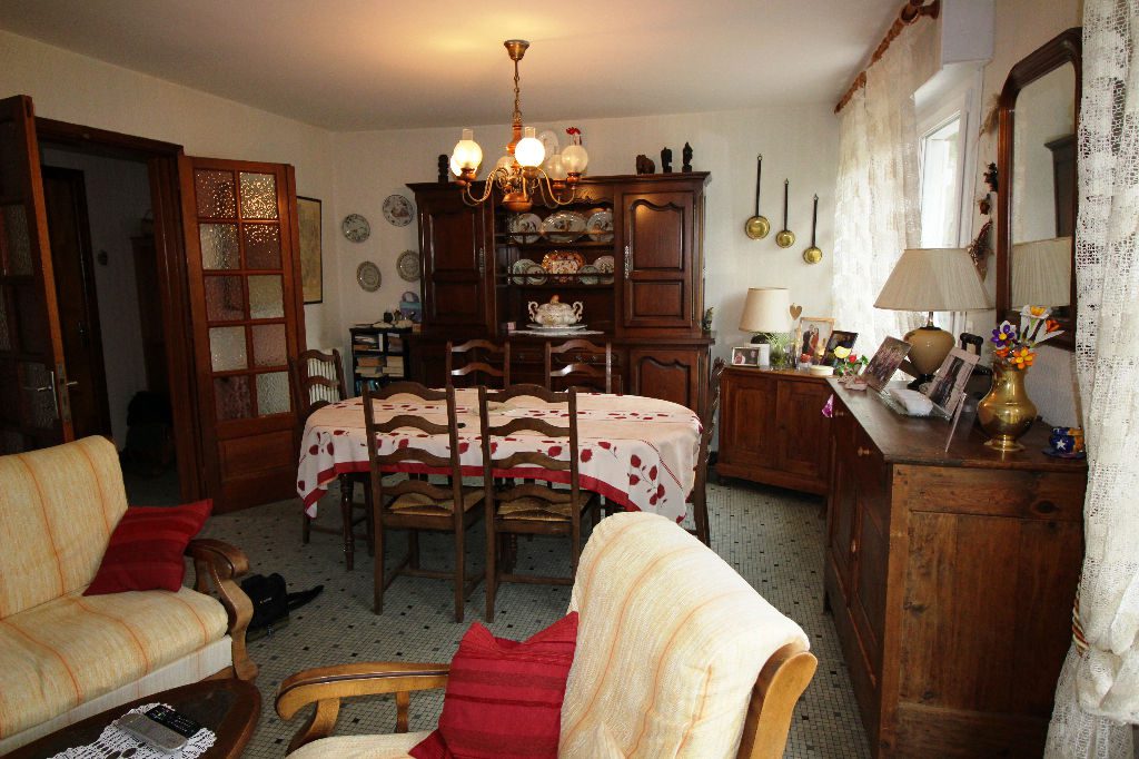 Proximité immédiate du centre bourg, maison comprenant. Au RDC : entrée, salle de bains, wc, cuisine équipée et aménagée, séjour avec cheminée donnant sur terrasse plein sud, une chambre. Garage. A l’étage : dégagement, trois chambres, salle d’eau, wc. Grenier. L’ensemble édifié sur un terrain de 870 m² environ clos et arboré.