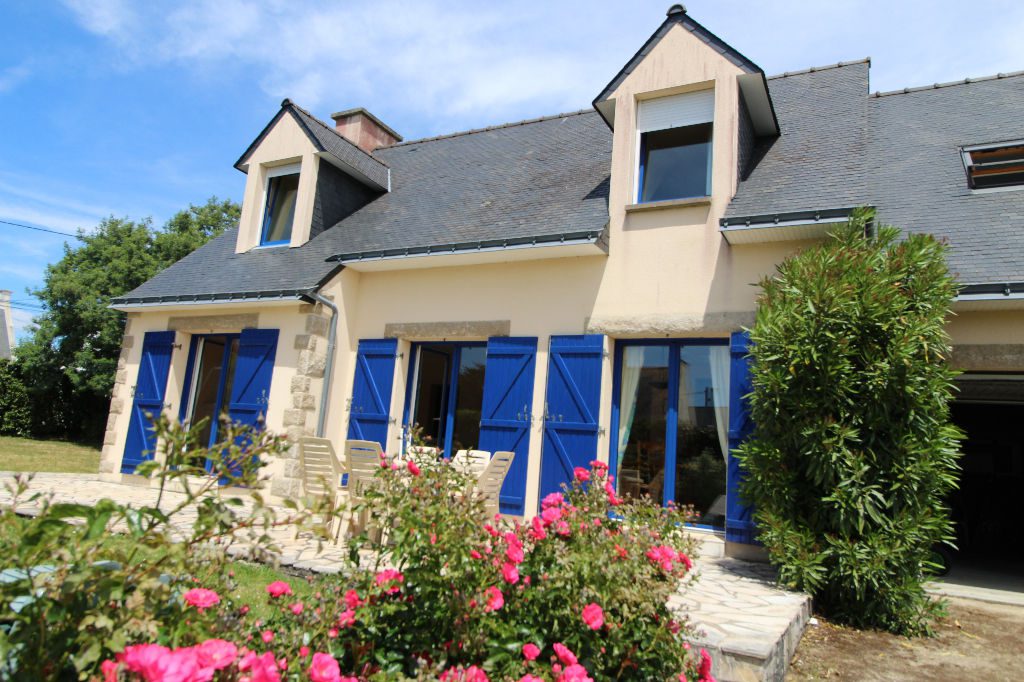 Proche plage de kercambre, cette maison d’habitation de qualité spacieuse et lumineuse vous attend. Elle comprend : au rez-de-chaussée : pièce de vie avec cheminée-coin cuisine aménagé et équipé, chambre, salle d’eau, W.C,