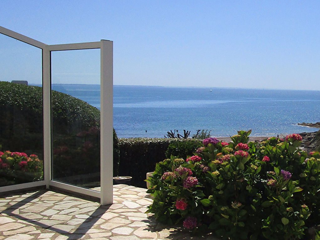 VUE IMPRENABLE SUR L’OCÉAN, pour cette maison d’habitation traditionnelle sous ardoises en très bon état comprenant :