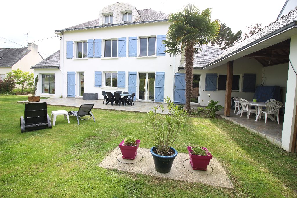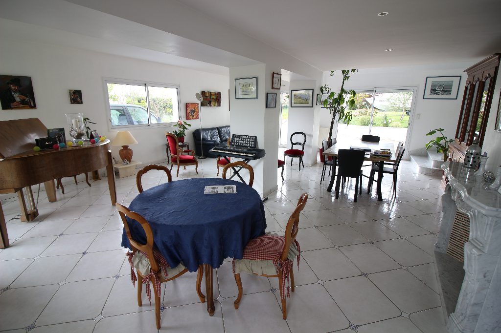 Agréable et spacieuse Maison familiale située dans un environnement calme à 300 mètres de la plage, à 3 minutes du bourg en voiture et piste cyclable à proximité. Elle se compose d’ un hall d’entrée avec placards, un cellier/chaufferie, un WC séparé du salon, une spacieuse et lumineuse pièce de vie de plus de 62 m² avec sa cheminée, une grande cuisine aménagée et équipée (21m²) donnant sur une grande terrasse et un préau, au 1er étage, un palier desservant trois chambres et un spacieux bureau, et une salle de bain avec douche, au dernier étage, trois chambres et une salle d’eau à finir de rénover. Garage attenant et communiquant, le tout sur un terrain clos et arboré de 1237 m²