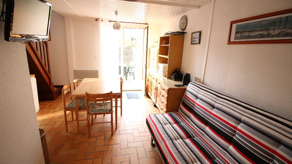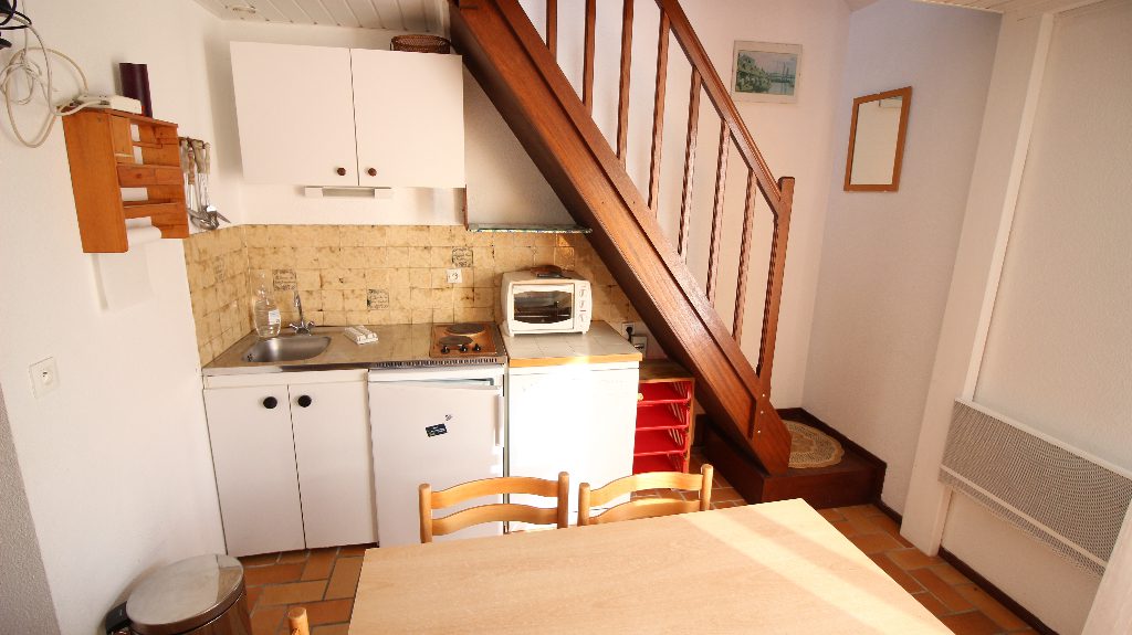 – A l’étage : une mezzanine servant de chambre et une petite chambre, 5 couchages possibles, Jouissance privative et exclusive d’un jardin attenant. Jardinet clos par une palissade en bois. Place de parking privative.