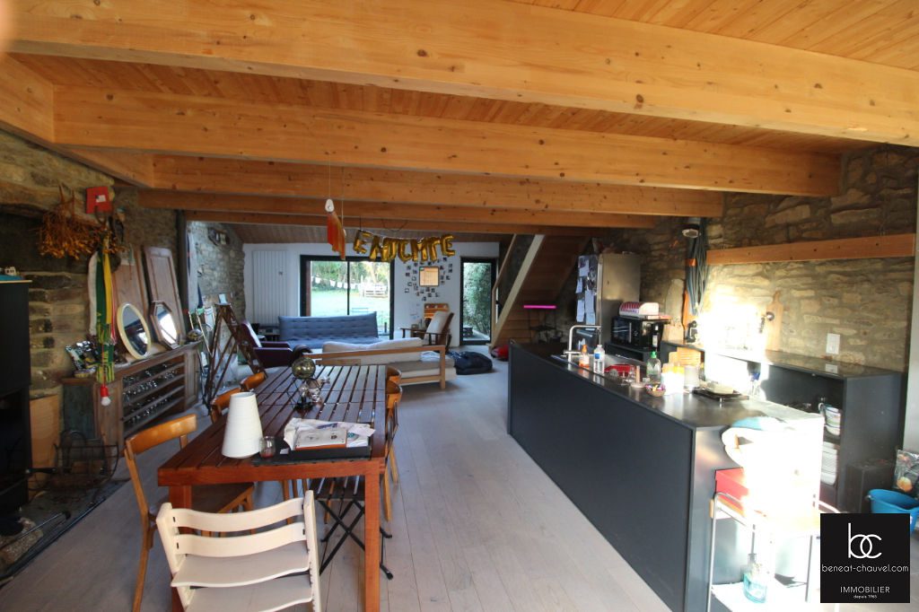 Au coeur d’un village et d’un alignement de maisons de pays, maison entièrement rénovée par un architecte dans le respect de l’ancien et des volumes contemporains. Au RdC vaste pièce à vivre de plus de 50 m2, traversante, composée d’une cuisine ouverte, d’un espace salle à manger avec insert et d’un volume salon en double-hauteur avec velux de toit. A l’étage, mezzanine sur le volume double-hauteur, deux chambres, salle de bains et wc. Au-dessus une chambre sous le toit, idéale pour les enfants avec grand velux. Vous serez séduits par la pierres apparentes, le bois, son exposition Est-Ouest, ses volumes double-hauteur, sa luminosité et son jardin devant et arboré à l’arrière.