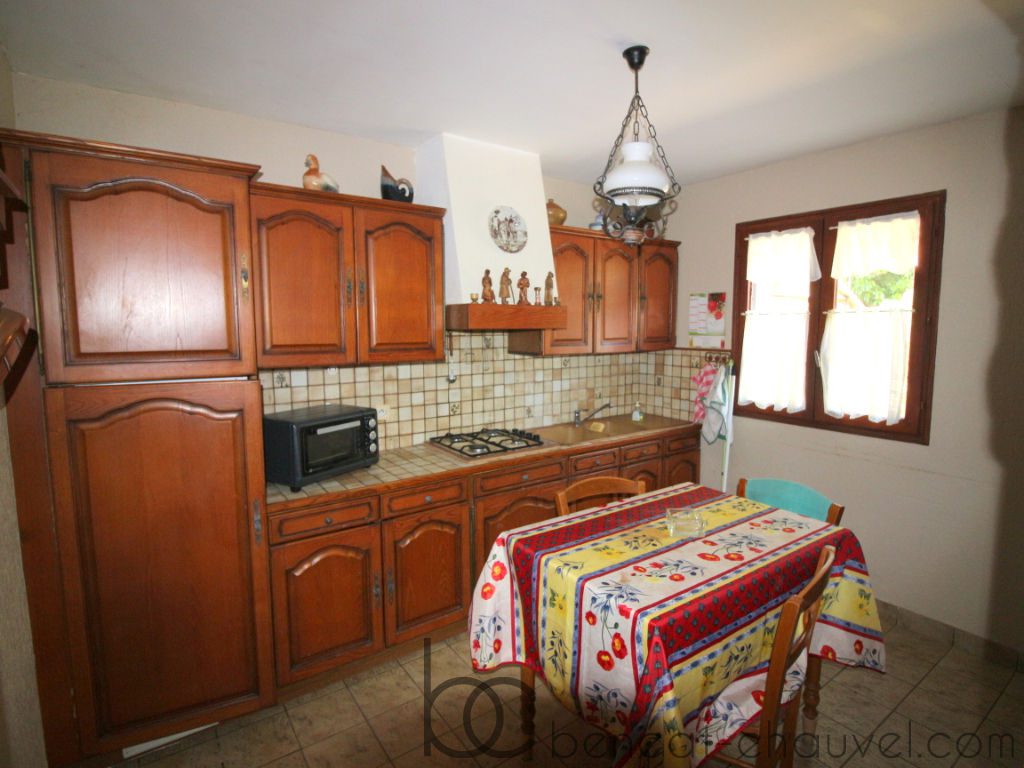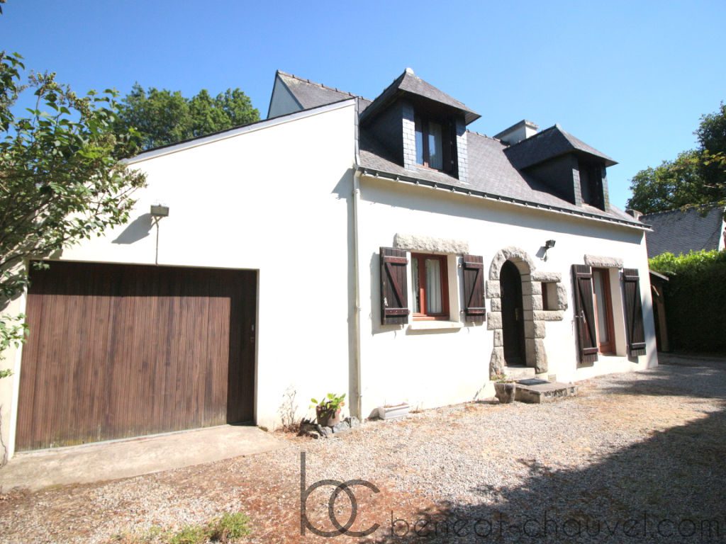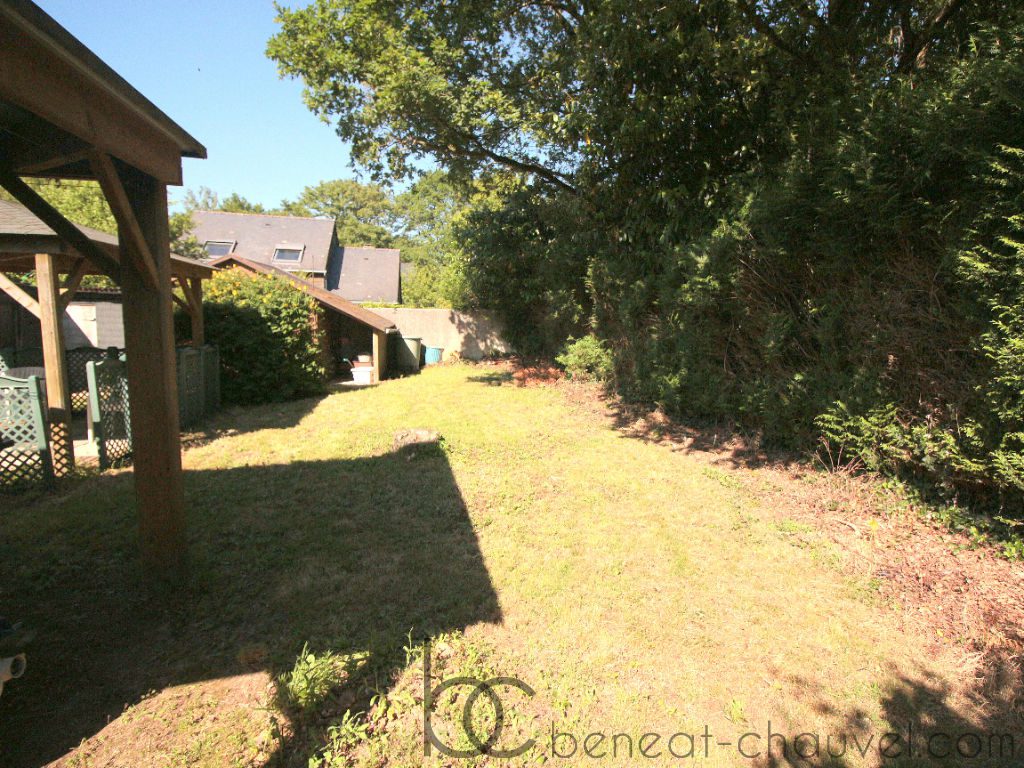 Sarzeau, idéalement située entre le bourg et la plage dans un secteur boisé une maison de construction traditionnelle comprenant au rez de chaussé : Entrée, séjour/salon, cuisine équipée, chambre, salle d’eau, wc. A l?étage : Deux chambres, salle de bains et wc.