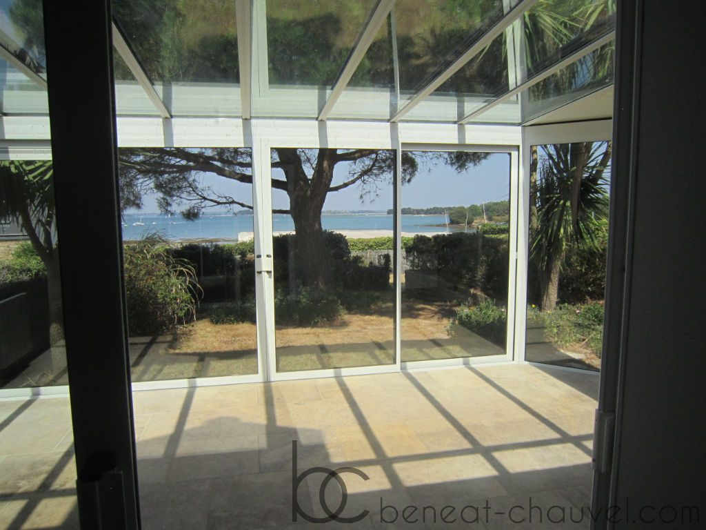 SARZEAU maison d’habitation avec superbe VUE GOLFE comprenant : séjour avec cheminée (insert) donnant sur terrasse, cuisine équipée de 20 m² (éléments de rangements, plaque de cuisson gaz, four, hotte, lave-vaisselle) donnant sur véranda, une chambre, salle d’eau, wc. A l’étage : une grande chambre (placard), deux chambres, salle de bains, wc. SOUS-SOL total. Cabanon bois. Terrain clos et paysagé de 620 m² environ.