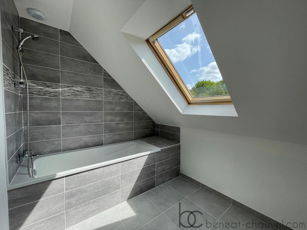 A l’étage : trois chambres, salle de bains, wc.