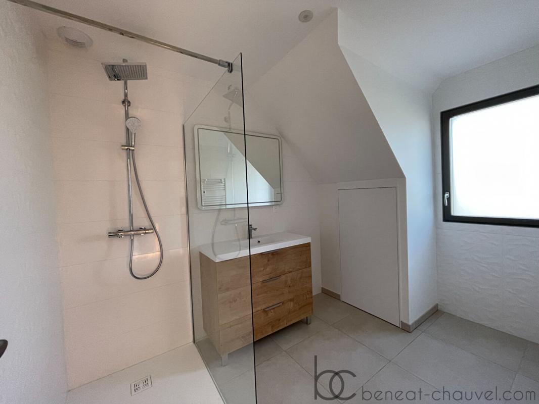 ARZON Océan, à proximité des grandes plages d’Arzon et des commerces, très belles prestations pour cette maison neuve vendue achevée comprenant entrée, salon séjour avec cuisine ouverte, 4 chambres dont une au rez de chaussée, 2 wc indépendant et 2 salles d’eau.