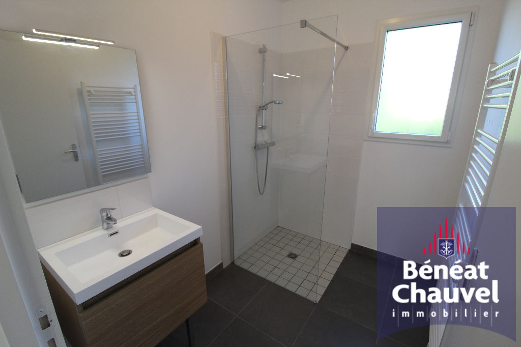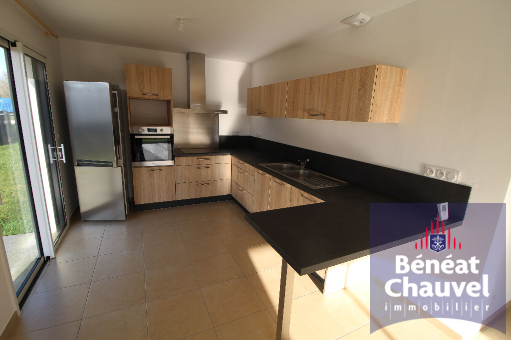 EXCLUSIVITÉ Centre bourg, maison neuve pour résidence principale ou secondaire exposée OUEST, à prox immédiate des commerces et comprenant, séjour avec coin cuisine aménagé et équipé de plus de 40 m², 3 chambres dont une au rez de chaussée, salle de bains, salle d’eau, 2 W.C et grenier aménageable de plus de 20 m² au sol.Garage sur terrain clos de 480 m² .