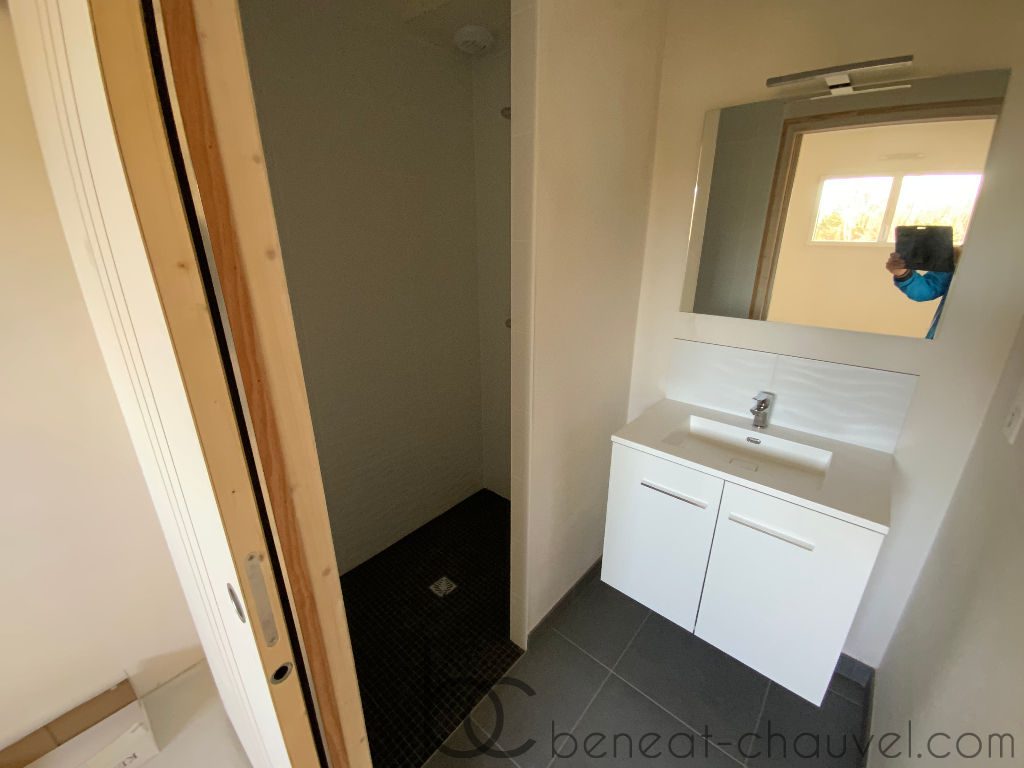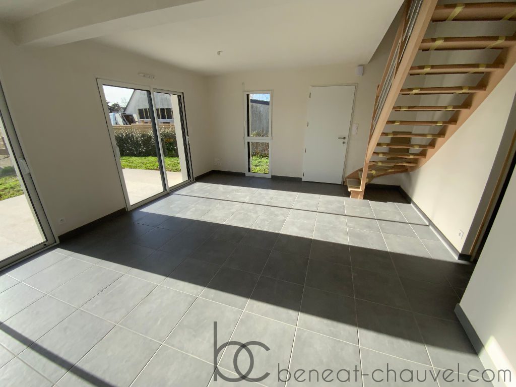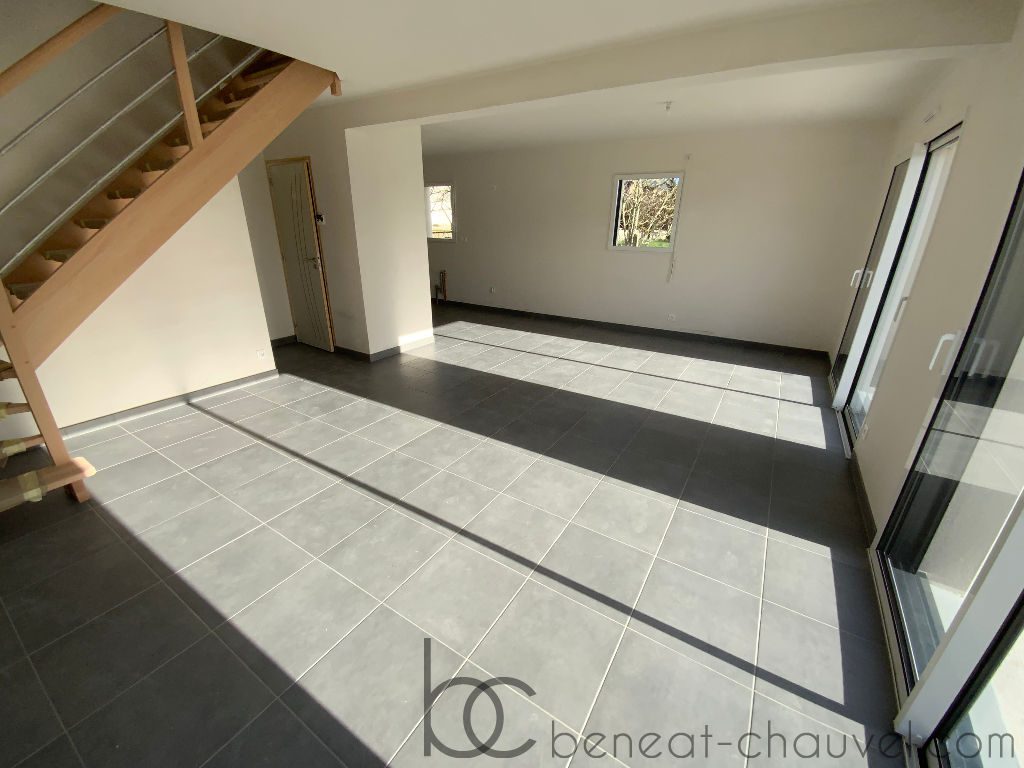 Les pieds dans le sable à 750 mètres, Agréable et lumineuse maison neuve de 2020 comprenant une entrée sur pièce de vie donnant sur une terrasse orientée plein Sud, espace cuisine à concevoir par vos soins suivant vos goûts, dégagement wc avec lave-main, chambre avec sa salle d’eau, à l’étage, dégagement trois chambres dont une avec une belle aperçu lointaine sur l’océan, salle de bain avec wc, agréable terrain clos et arboré de plus de 400 m², garage attenant et communiquant. Possibilité de mettre un bateau ou camping -car le long du garage.