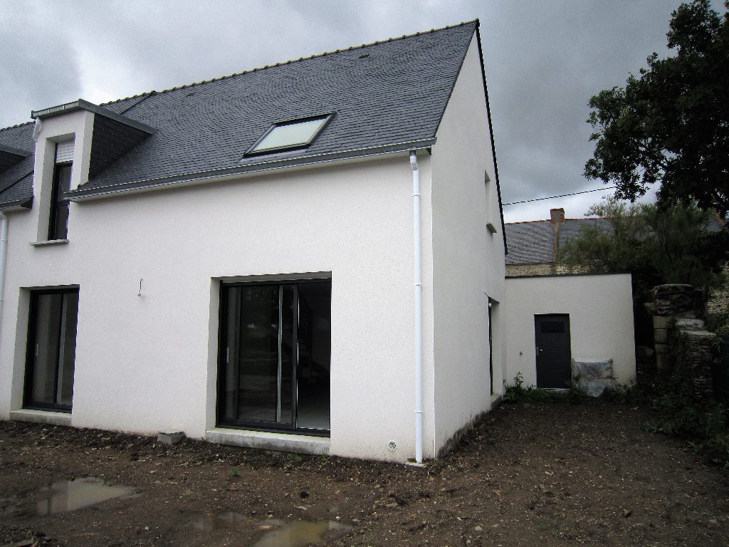 SARZEAU proximité immédiate plage, port et commerce au calme. Maison neuve aux normes RT 2012 composée d’un séjour/salon, cuisine, une chambre, salle d’eau, wc. Garage. Étage : dégagement, trois chambres, salle de bains avec douche, wc. Sur un terrain de 416m² environ. Frais de notaire réduit à 2.5 %.