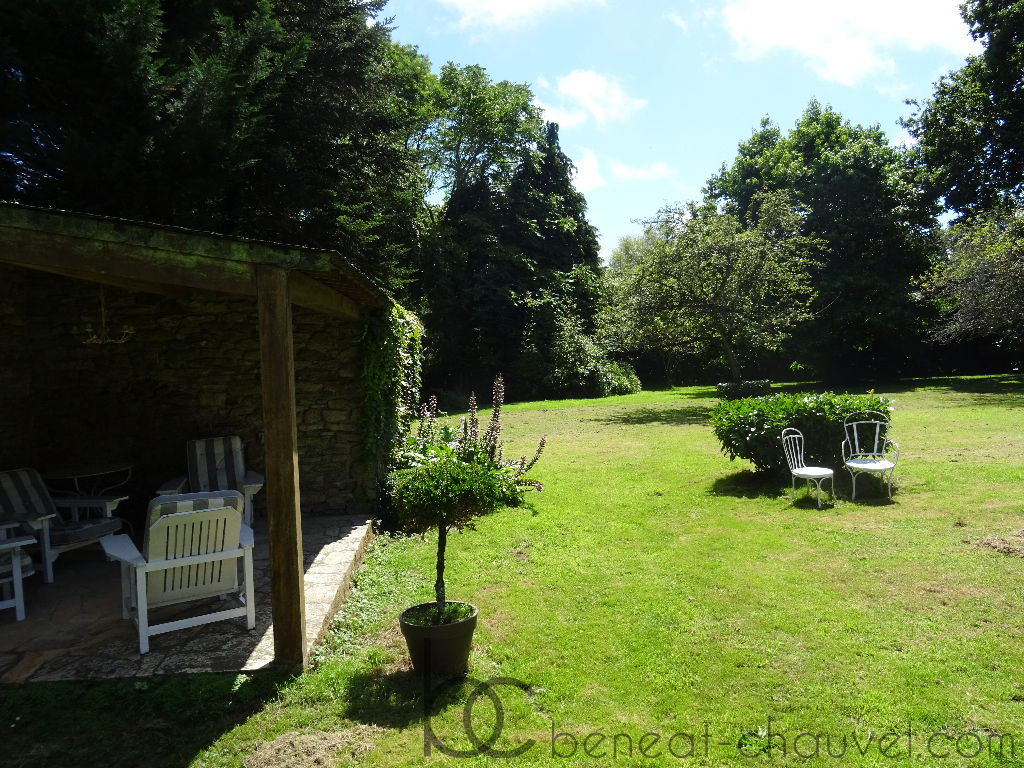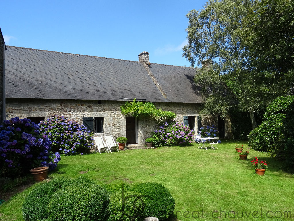 Une maison d’amis comprenant une grande pièce de vie, une chambre avec salle d’eau et wc avec à l’étage un grand grenier. Un atelier extérieur en pierres sur son terrain de 1819 m² entièrement arboré.
