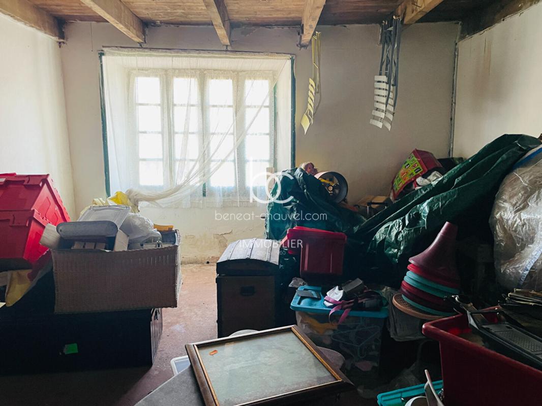 – Une maison de 60 m2 au sol (environ) à rénover avec deux pièces, un grenier et une partie étable.