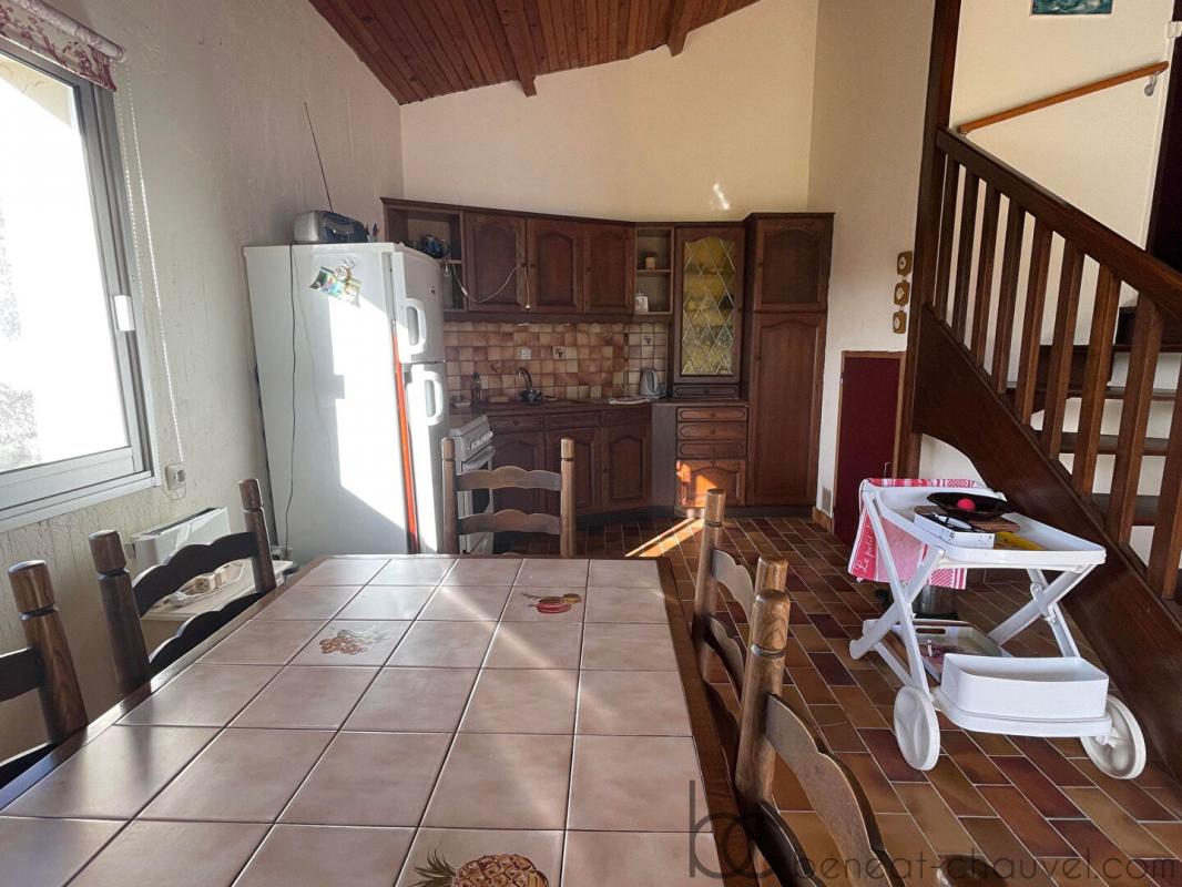 Au rez-de-chaussée : Spacieux salon/séjour avec cheminée et cuisine donnant sur terrasse.