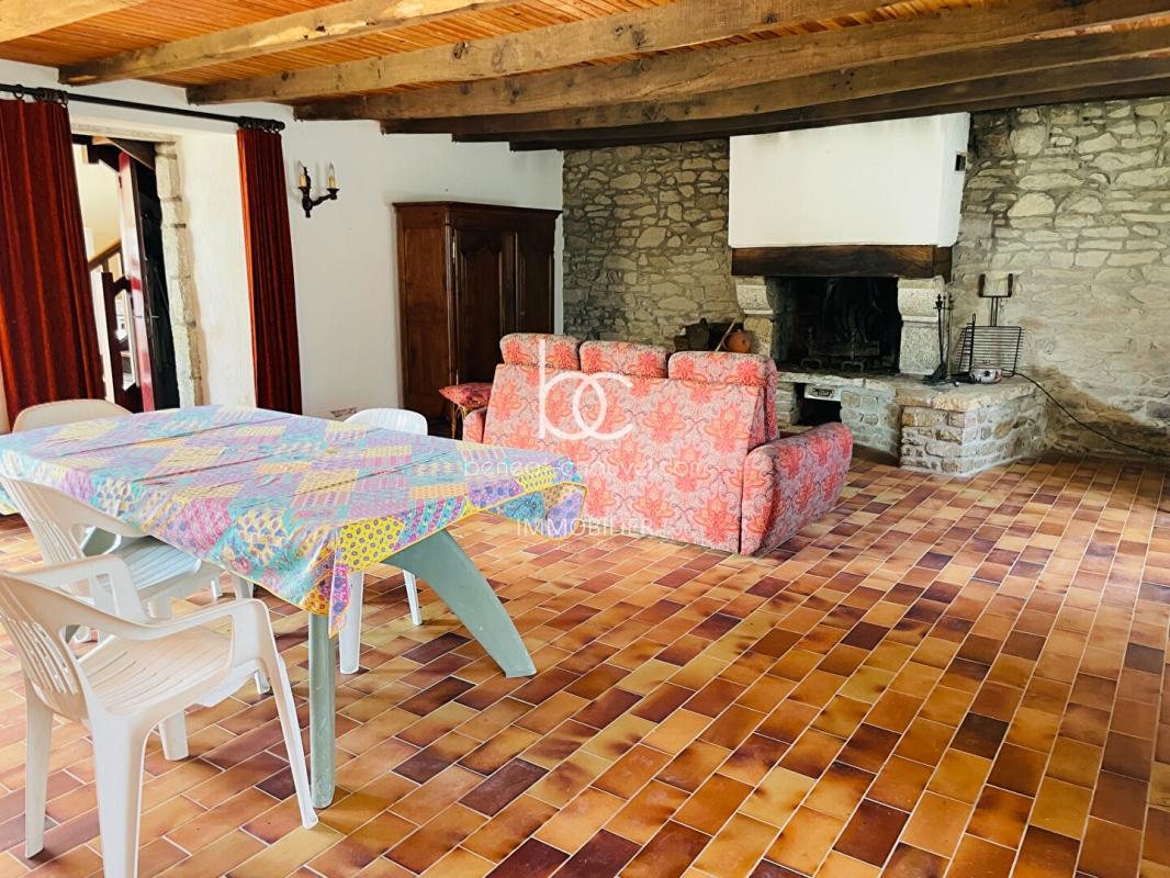 Au rez-de-chaussée : Spacieux salon/séjour avec cheminée et cuisine donnant sur terrasse.