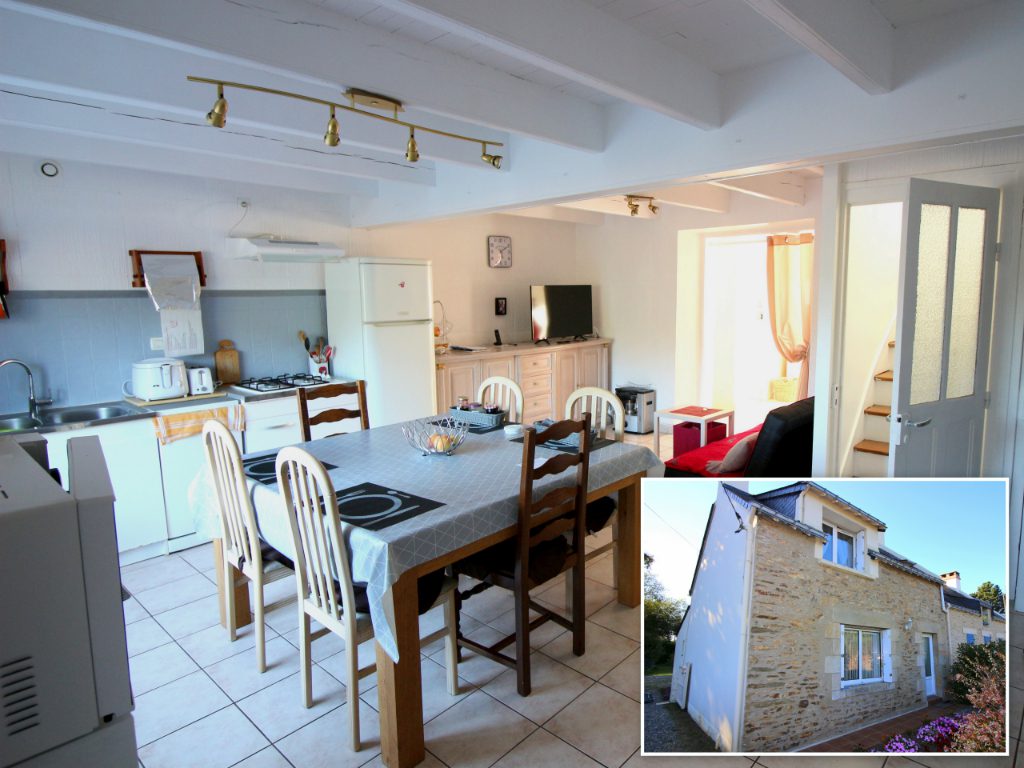 Proche SARZEAU bourg, en direction des plages, jolie maison de pays entièrement restaurée comprenant au RDC : salon, séjour avec coin cuisine, WC -chambre