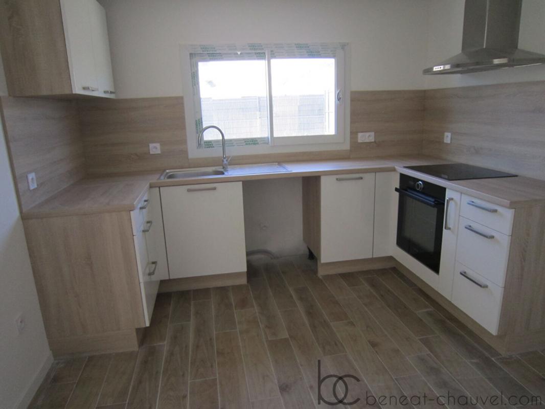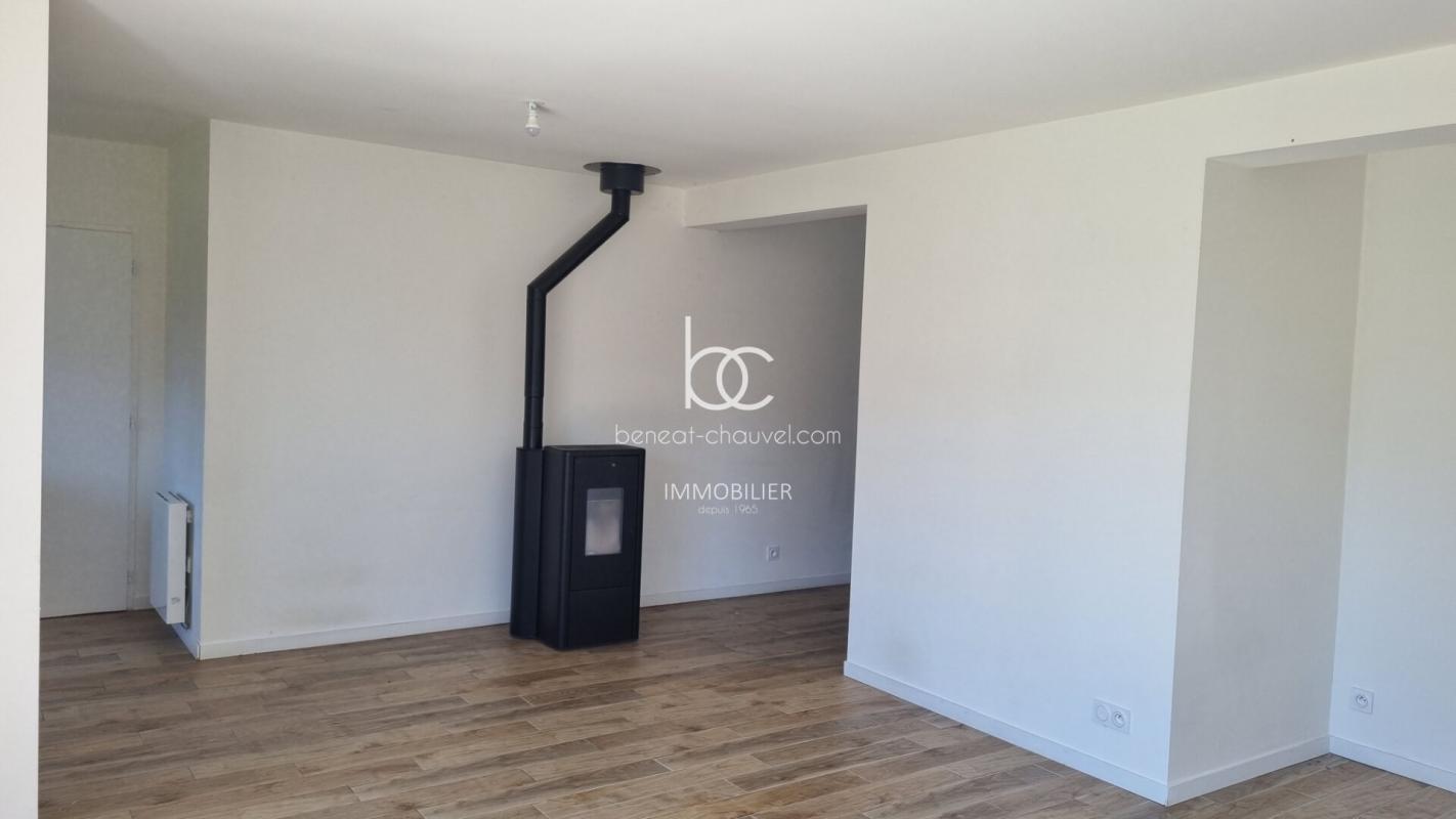 Hall – Séjour/Salon donnant sur terrasse (poêle à granule) – Cuisine américaine équipée et aménagée (Hotte ; plaque de cuisson ; Four) – Buanderie – Garage –
