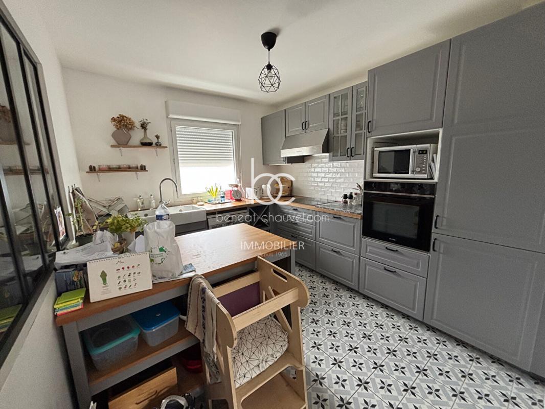 Un rez-de-chaussée fonctionnel et tourné vers l’extérieur La maison s’ouvre sur une entrée soignée équipée de placards de rangement, menant à une cuisine indépendante aménagée et équipée. La pièce de vie principale, un salon-séjour chaleureux, bénéficie d’un accès direct à un terrain clos de 199 m². Grâce à son exposition ouest, le jardin devient un véritable prolongement de la maison pour profiter des après-midis ensoleillés. Un garage intégré et des sanitaires complètent ce niveau.