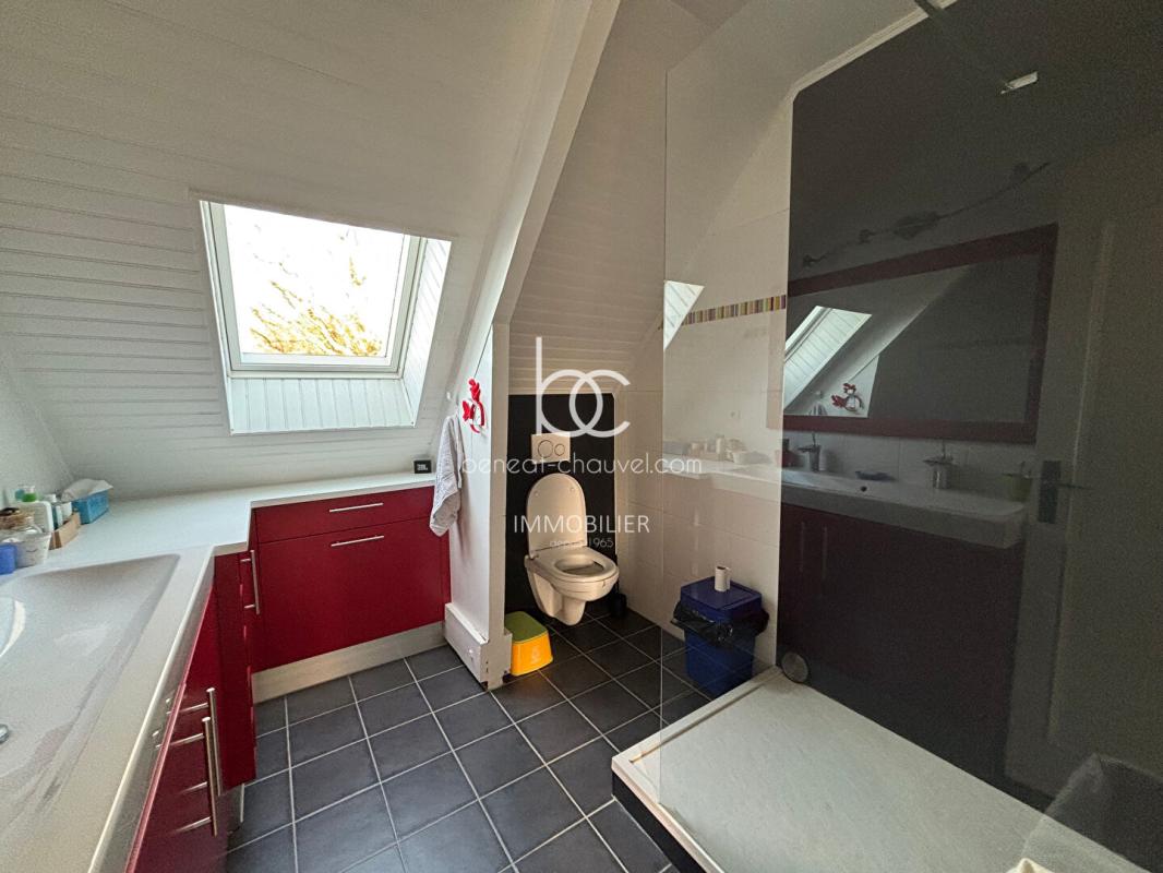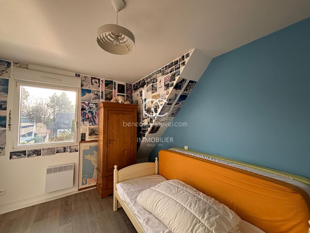 L’escalier mène à une mezzanine spacieuse qui dessert l’espace nuit de l’étage. Celui-ci se compose de quatre chambres confortables, idéales pour des enfants ou des espaces de travail. Un grenier aménageable offre également une opportunité supplémentaire de créer une 6ème chambre ou une salle de jeux selon vos besoins. Cette modularité fait de cette maison un bien qui s’adapte à l’évolution de votre famille.