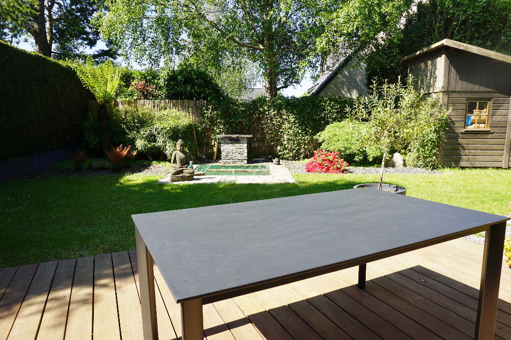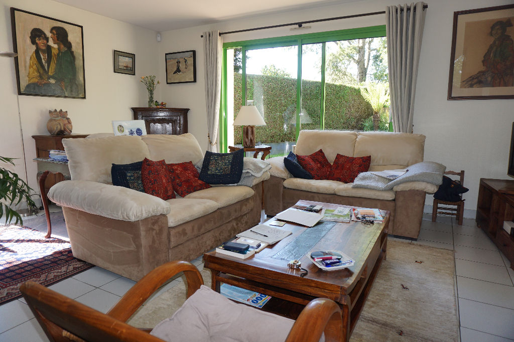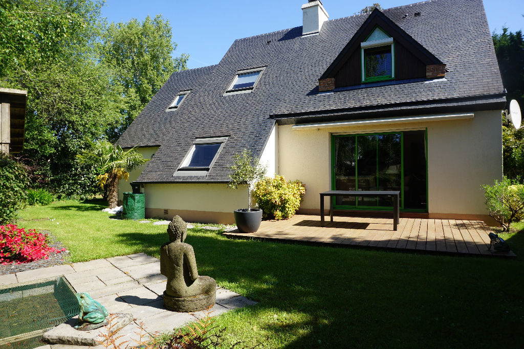 EXCLUSIVITE – Baden Bourg, les commerces à 2 pas, Contemporaine très soignée sur un joli terrain de 408 m² dessiné par un paysagiste et abri de jardin (tondeuse, karcher, bois..). Elle comprend : Hall, séjour-salon avec cheminée et insert, cuisine équipée, une chambre avec placard, salle d’eau, wc, bureau équipé, une chambre au-dessus avec bibliothèque, cellier buanderie. Garage
