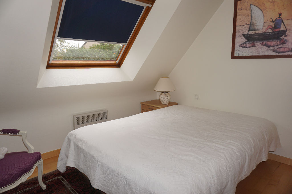 Etage : 2 chambres dont une avec dressing, bureau entièrement équipé (table, étagères, placards), salle de bains, wc.