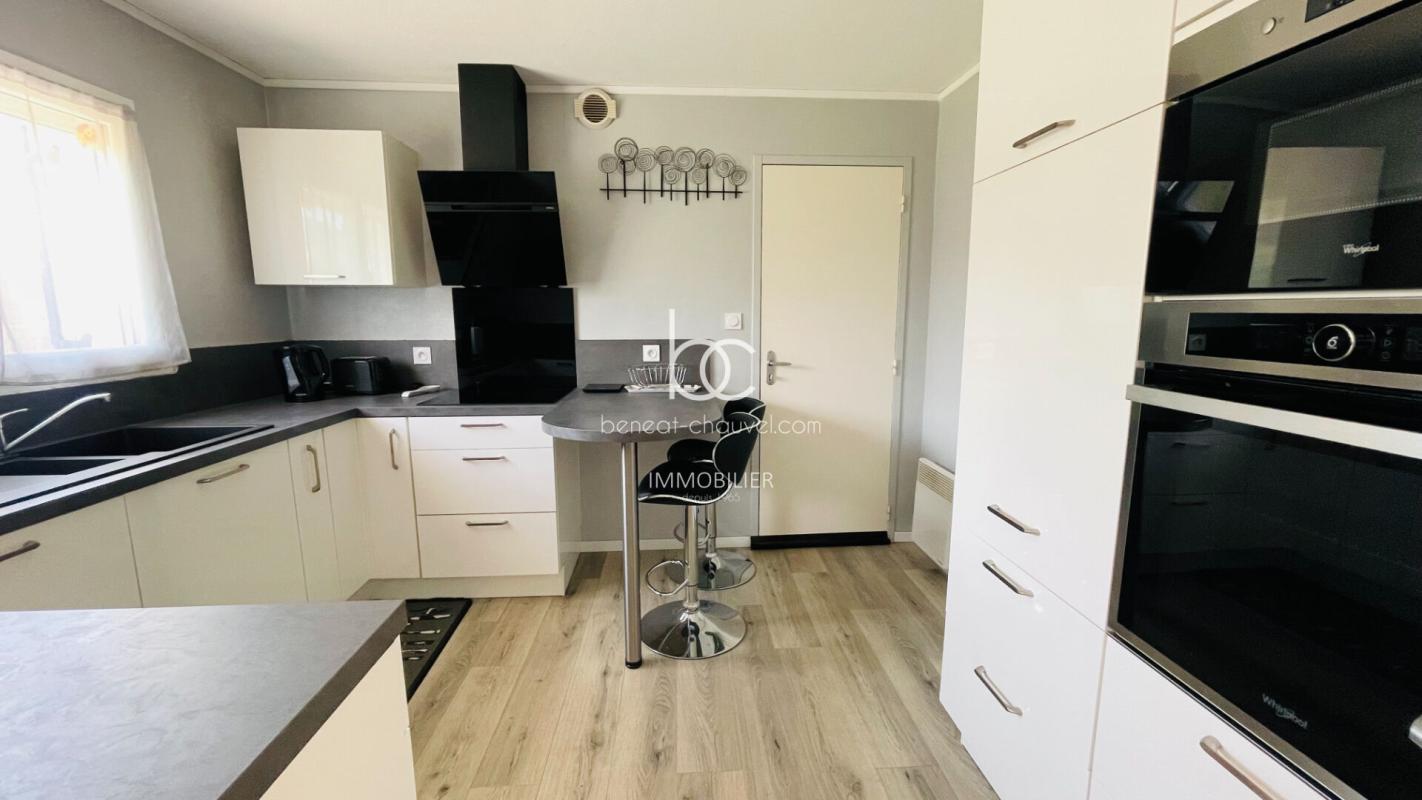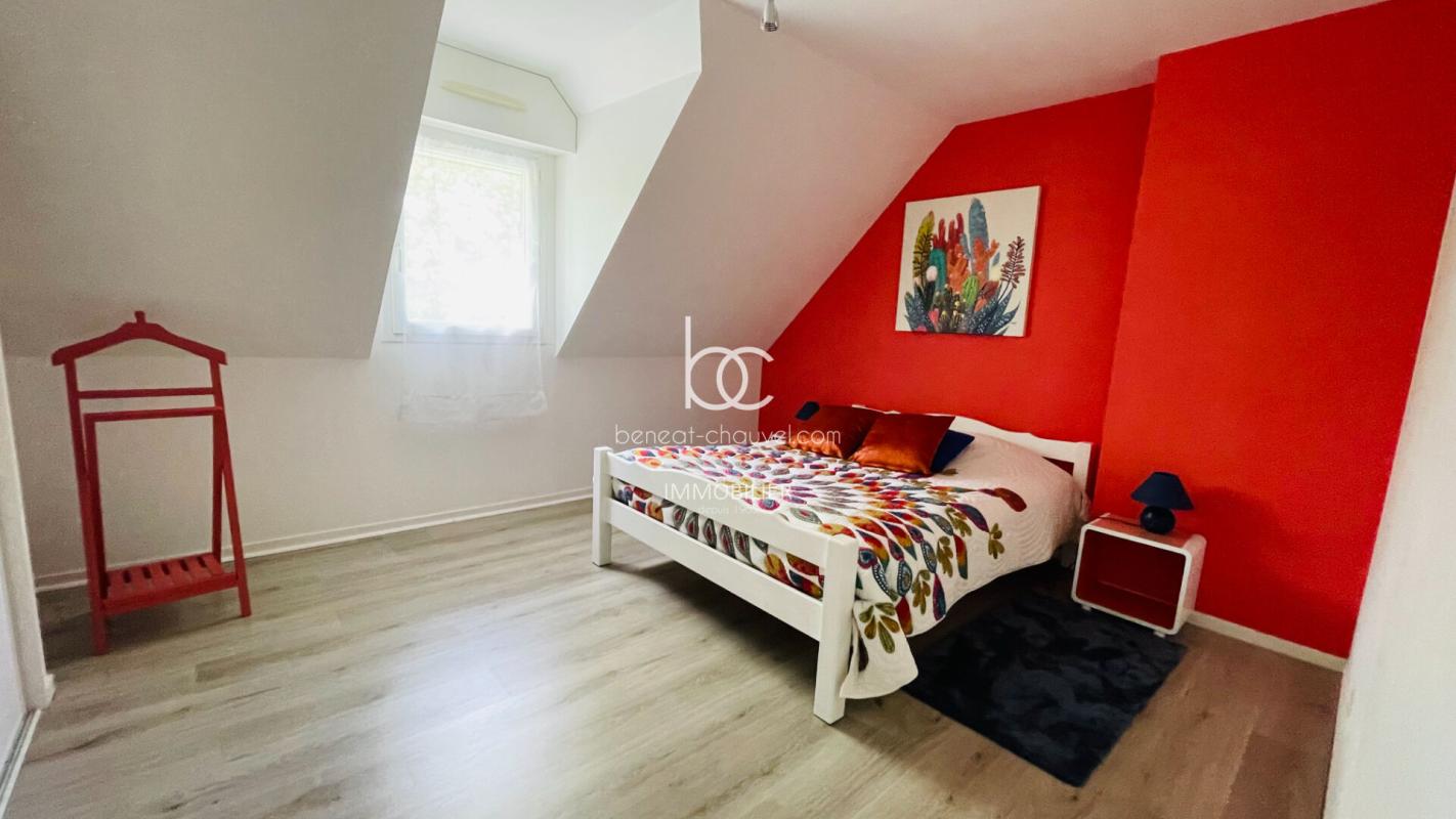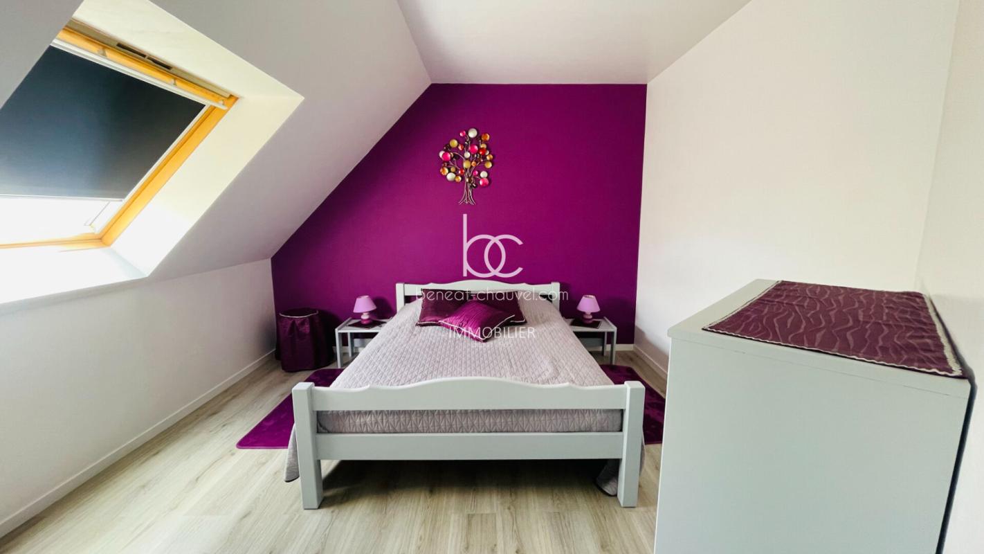 L’intérieur, soigné et chaleureux, s’ouvre sur un hall d’entrée qui dessert une cuisine séparée entièrement équipée et aménagée, ainsi qu’un vaste salon/séjour agrémenté d’un poêle, idéal pour des soirées conviviales. La pièce de vie se prolonge vers une belle véranda récente, véritable espace de détente lumineux ouvert sur le jardin tout au long de l’année. Pour plus de fonctionnalité, le rez-de-chaussée dispose d’un coin nuit complet comprenant une chambre et une salle d’eau privative, ainsi qu’un WC indépendant et un garage attenant offrant un espace de stockage ou de stationnement sécurisé.