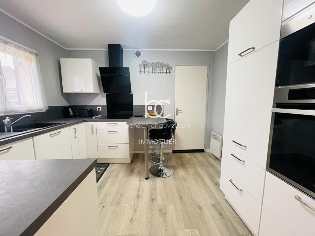 L’intérieur, soigné et chaleureux, s’ouvre sur un hall d’entrée qui dessert une cuisine séparée entièrement équipée et aménagée, ainsi qu’un vaste salon/séjour agrémenté d’un poêle, idéal pour des soirées conviviales. La pièce de vie se prolonge vers une belle véranda récente, véritable espace de détente lumineux ouvert sur le jardin tout au long de l’année. Pour plus de fonctionnalité, le rez-de-chaussée dispose d’un coin nuit complet comprenant une chambre et une salle d’eau privative, ainsi qu’un WC indépendant et un garage attenant offrant un espace de stockage ou de stationnement sécurisé.