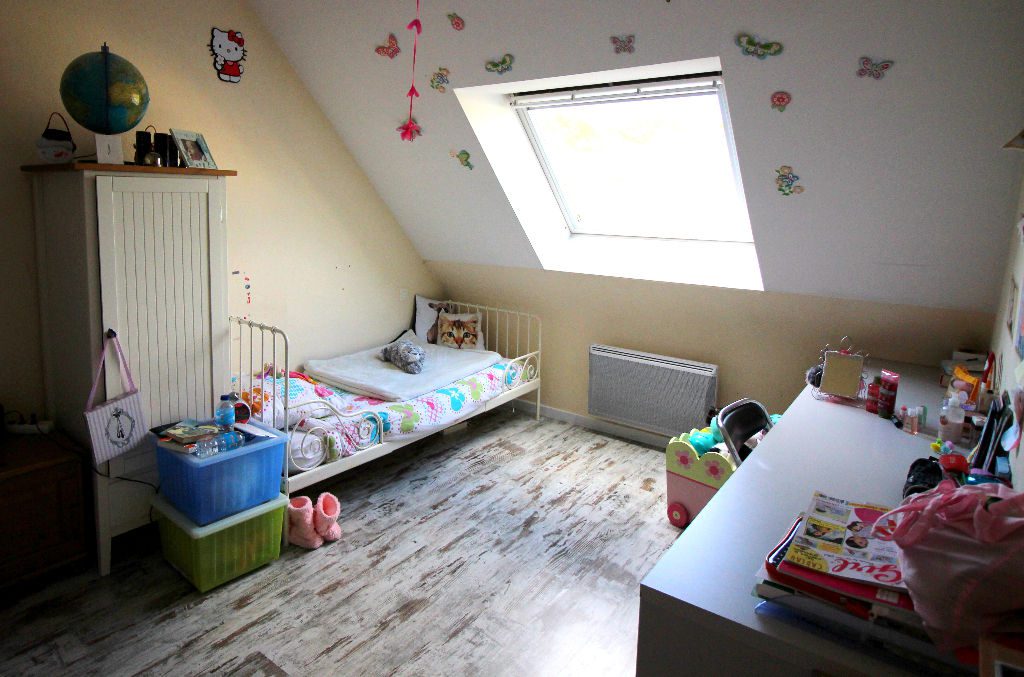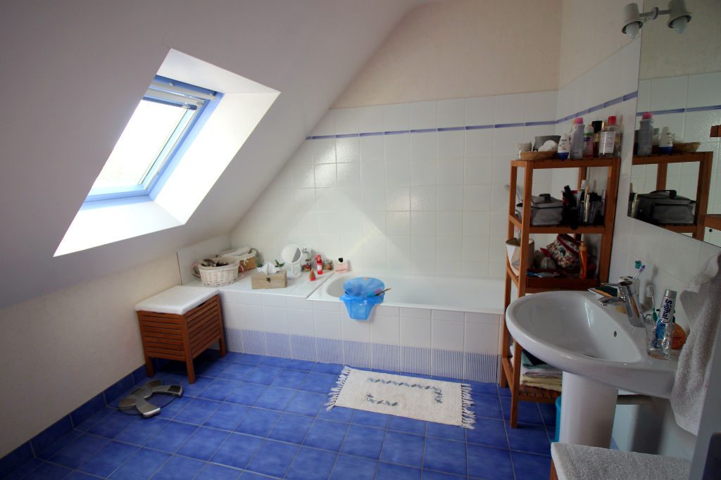 A l’étage : trois chambres, salle de bains et wc.