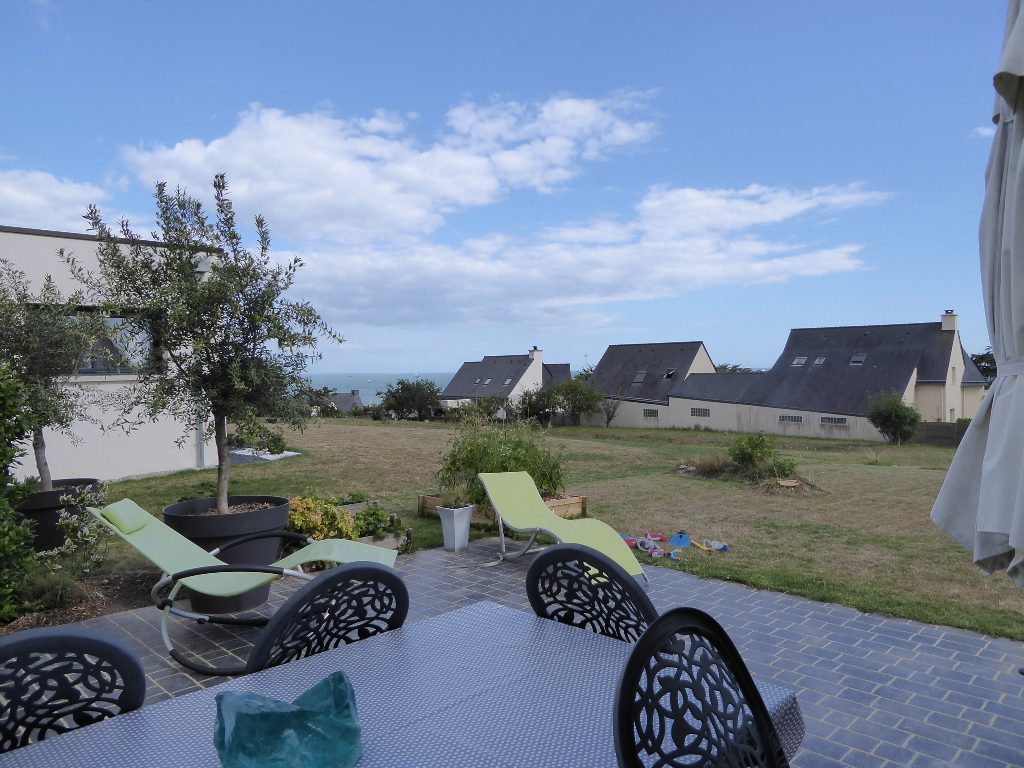 Vue dégagée et aperçu mer des différentes pièces, Prestations et état impeccable, sans travaux, vous n’avez plus qu’à poser vos valises et profiter des bien faits de la presqu’île ! Coup de coeur assuré !