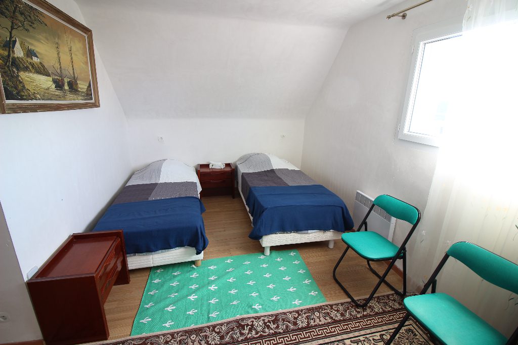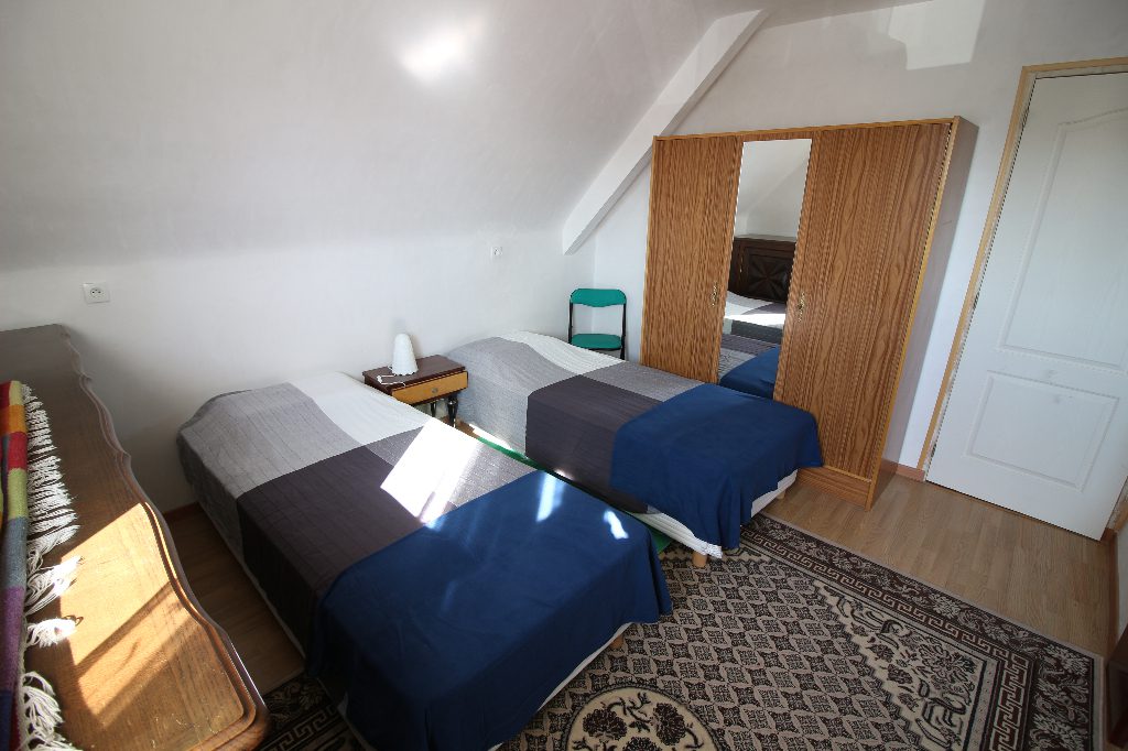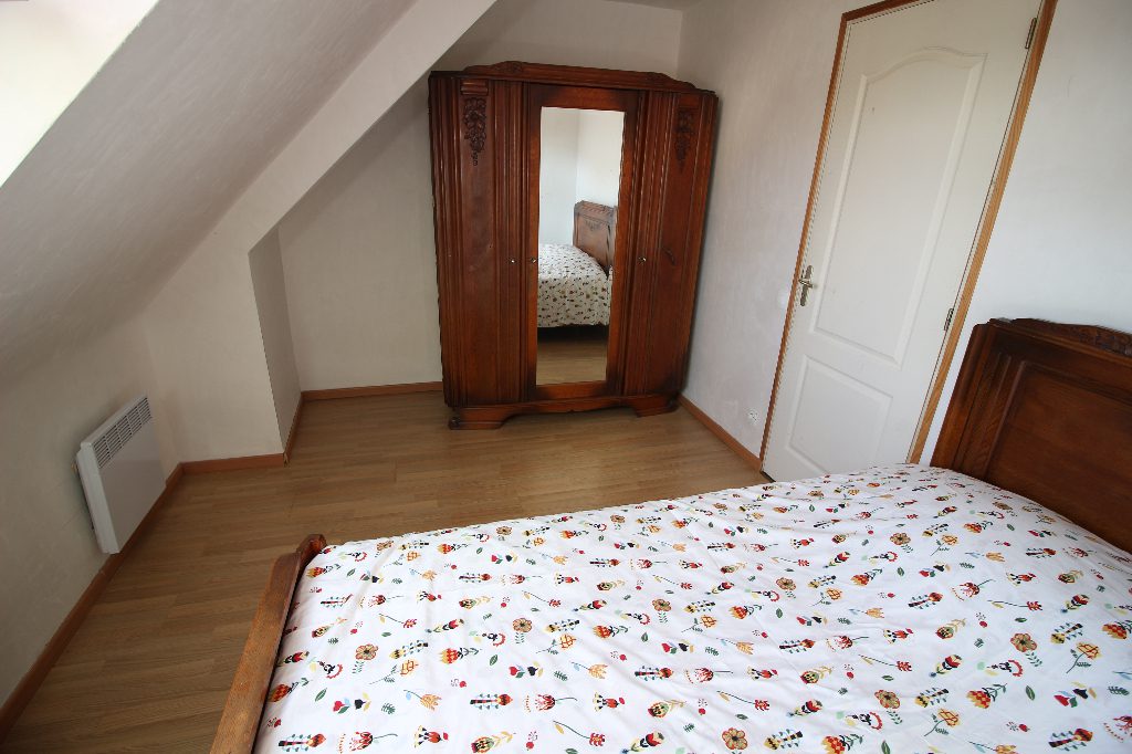 A l’étage, deux chambres, une salle d’eau et un wc.