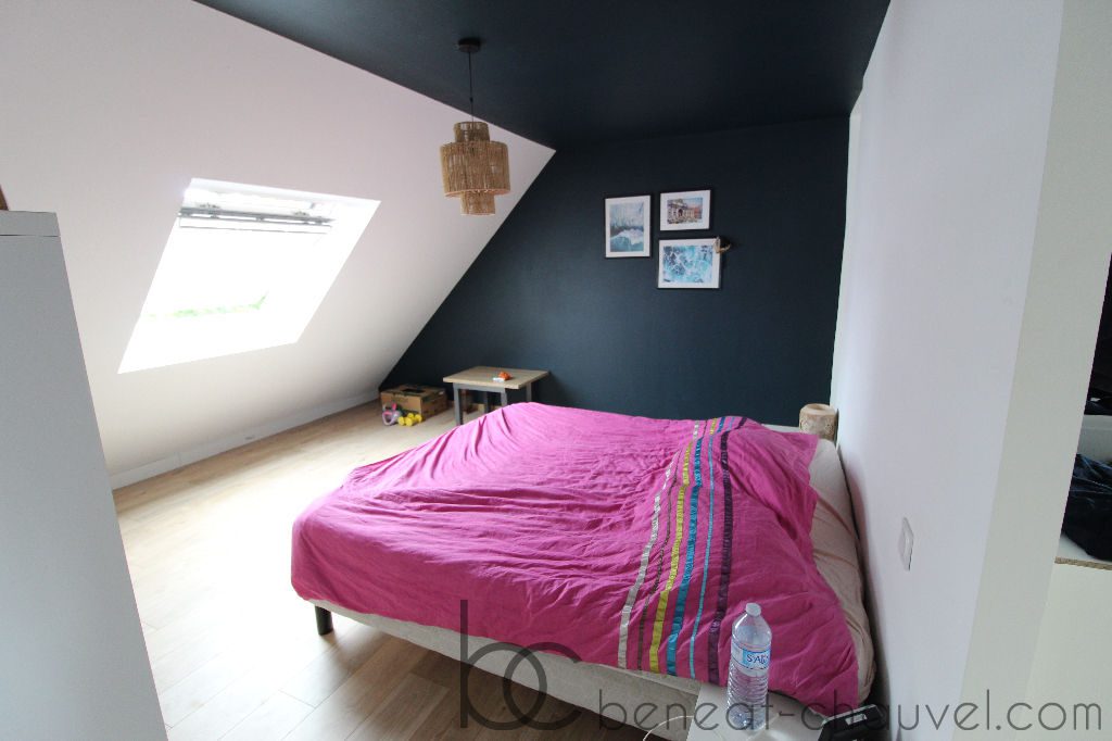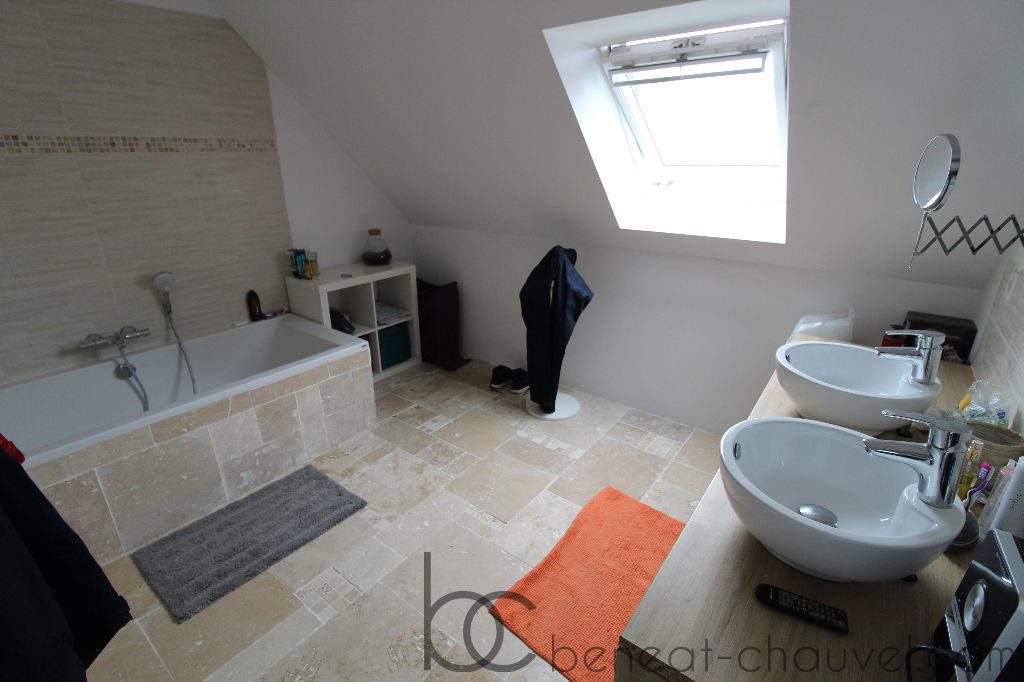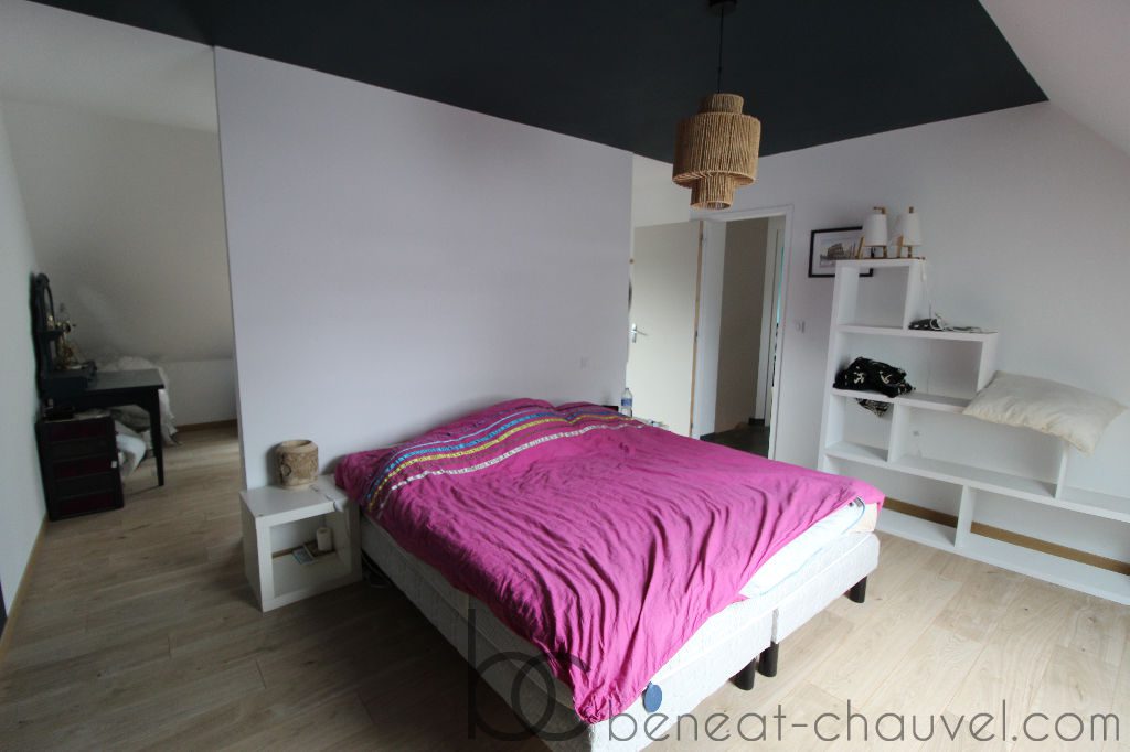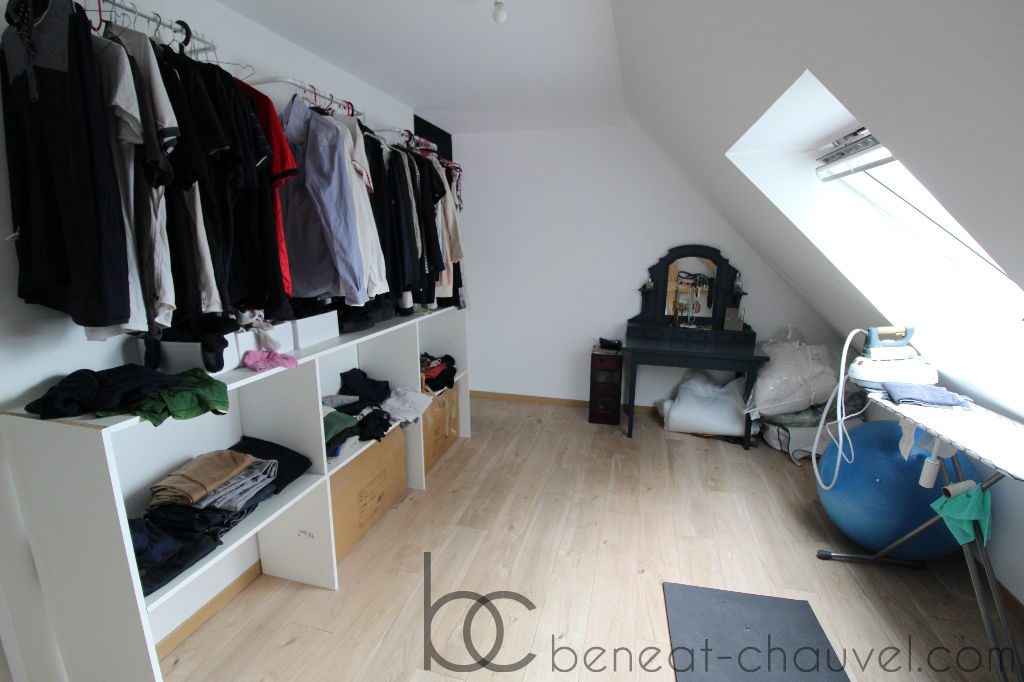 à l’étage : palier, chambre avec dressing, chambre, salle de bains, W.C.