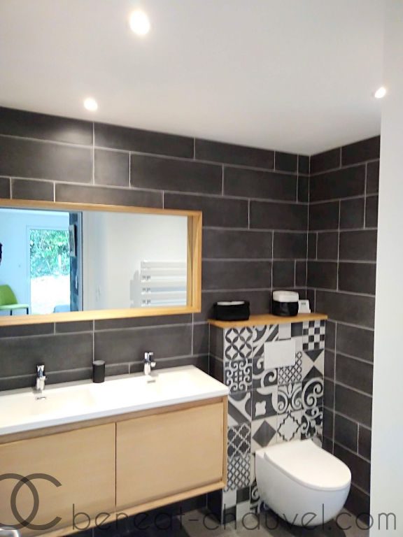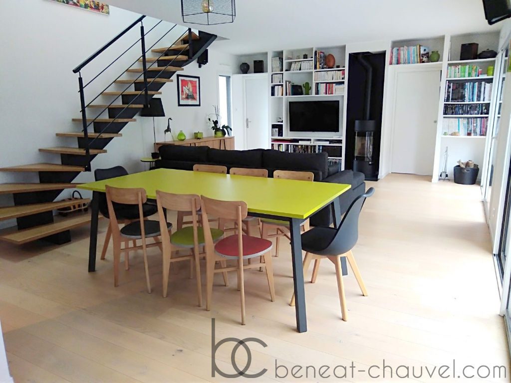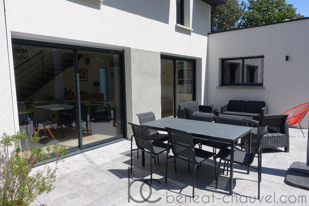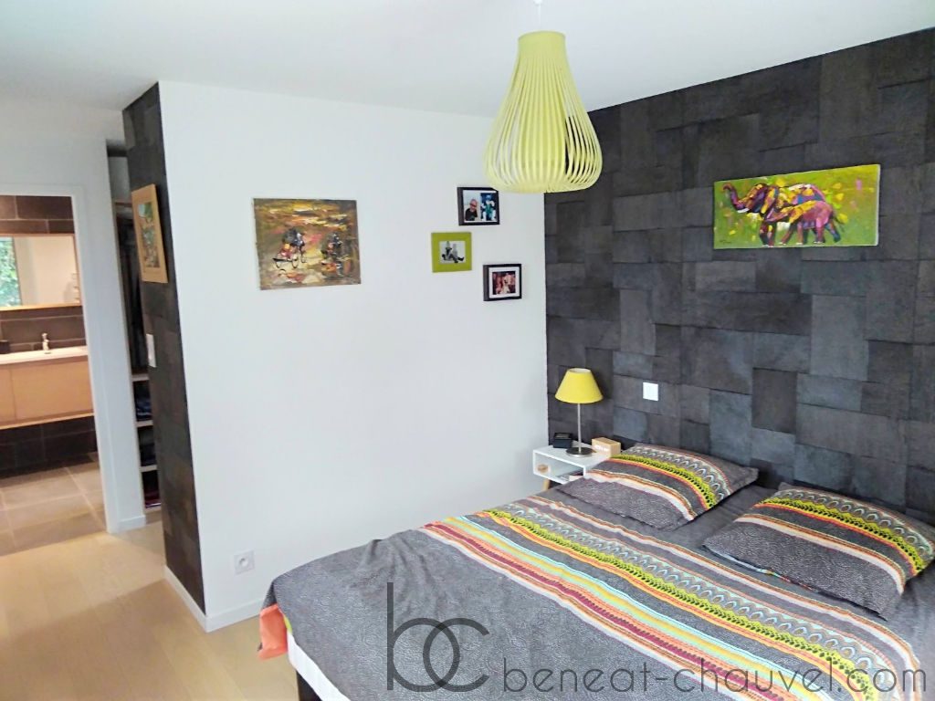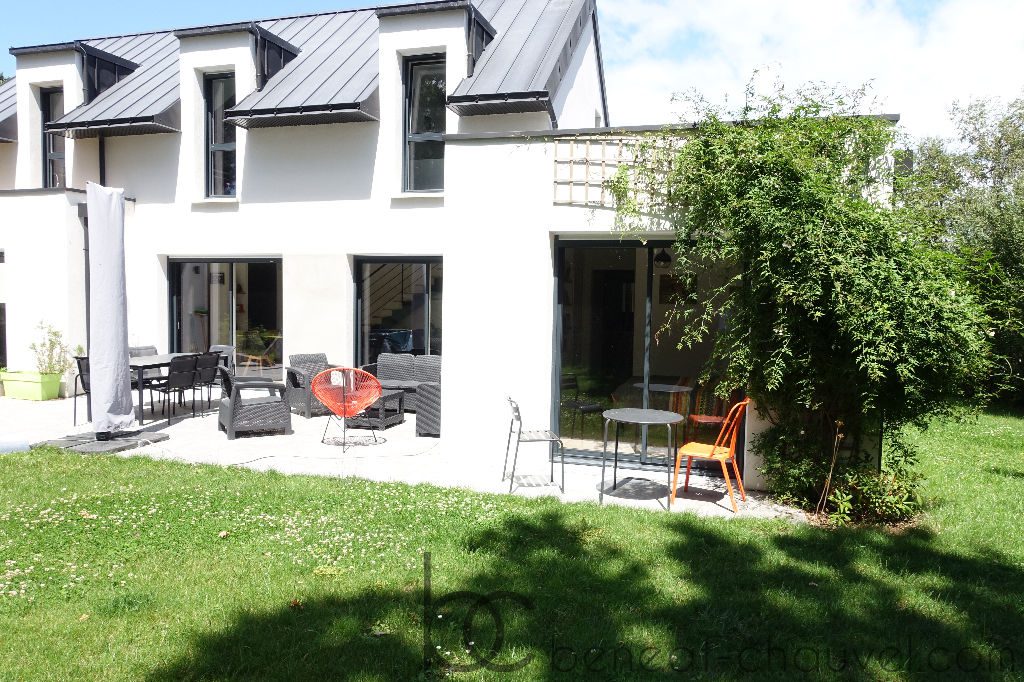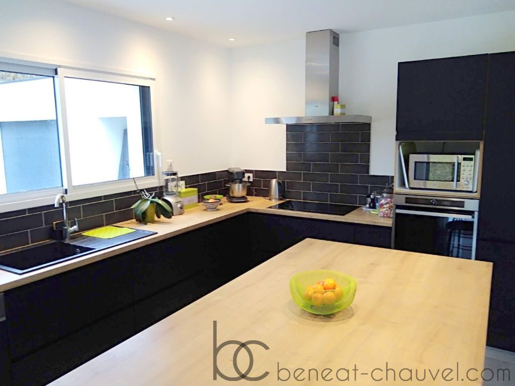 Entre ville et plages coté Océan, maison contemporaine de 2018, prestations soignées hors lotissement comprenant : – au rez-de-chaussée, entrée avec placards, séjour- salon avec Poêle à bois, cuisine ouverte équipée et aménagée. buanderie, WC avec lave-mains, Un espace nuit avec un bureau indépendant, un dressing, une salle de douche et une grande chambre. Ainsi qu’un double garage indépendant avec Car ports.