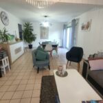 Entrée avec placard, séjour salon avec terrasse, cuisine aménagée et équipée d’une hotte, trois chambres, salle de bains, wc, local chaudière. Carport.