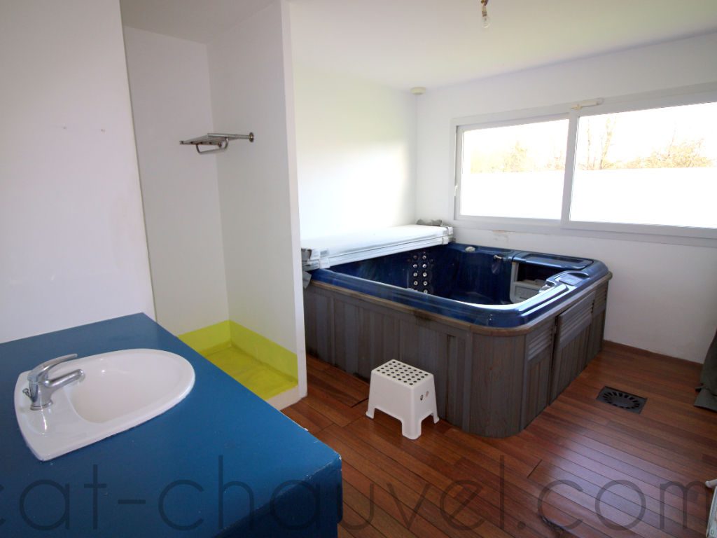 – Au rez-de-chaussée : Entrée, vaste séjour/salon en deux parties avec cheminée insert, cuisine américaine équipée, arrière cuisine, bureau, une chambre avec dressing, salle de bains-spa, buanderie et wc.