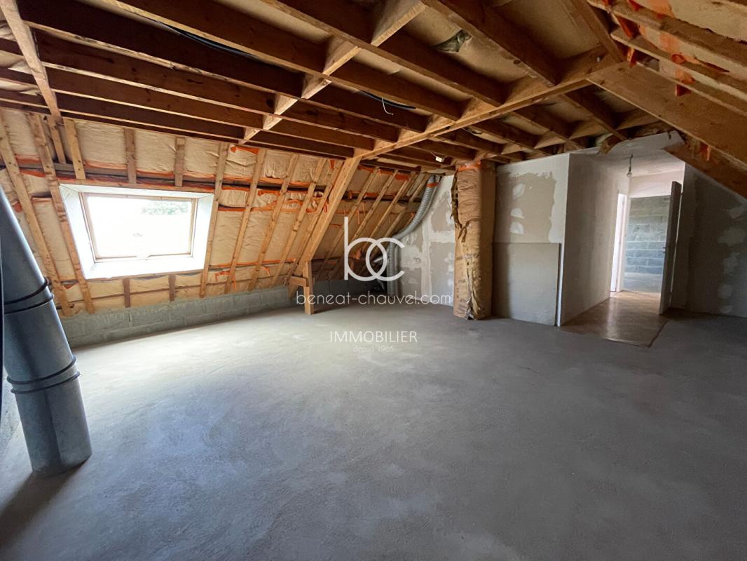 L’accès par le garage mène à l’étage déjà en partie aménagé avec une chambre et un W.C. avec lave-mains. Possibilité d’aménager facilement deux autres chambres et une salle de bains supplémentaire, portant le potentiel habitable total à environ 130 m².