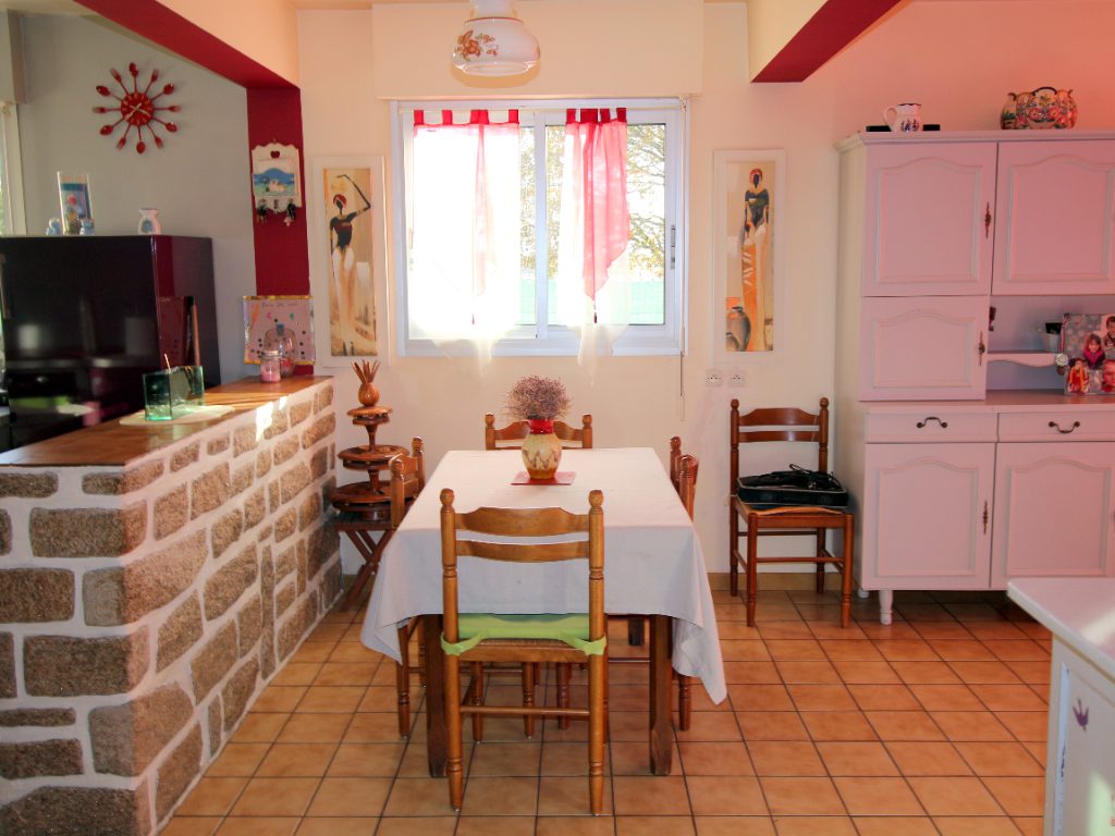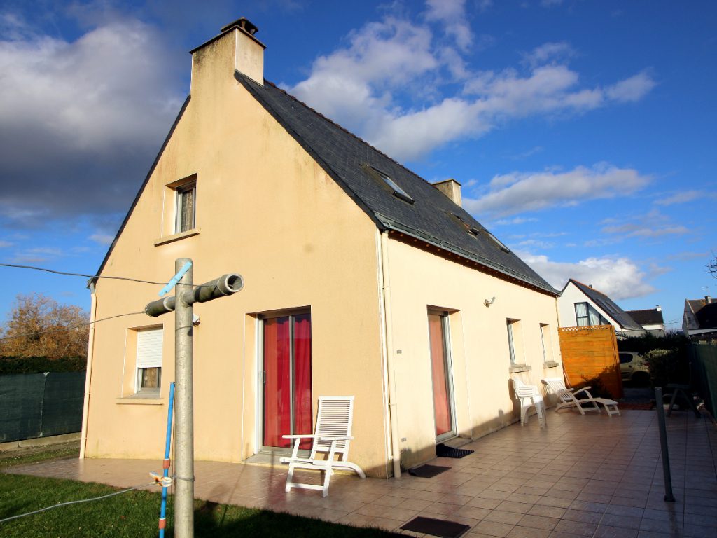 LE TOUR DU PARC – VUE MER- Maison traditionnelle à deux pas de l’océan constituée d’une entrée, d’un WC, d’une cuisine aménagée et équipée ouverte sur un salon-séjour avec poêle à bois, le tout donnant sur une terrasse orientée Sud, une chambre. L’étage est composé de deux chambres et un grenier aménageable. L’ensemble sur un beau terrain d’une surface de 856 m2 disposant d’une vue mer et d’un grand garage en fond de parcelle.
