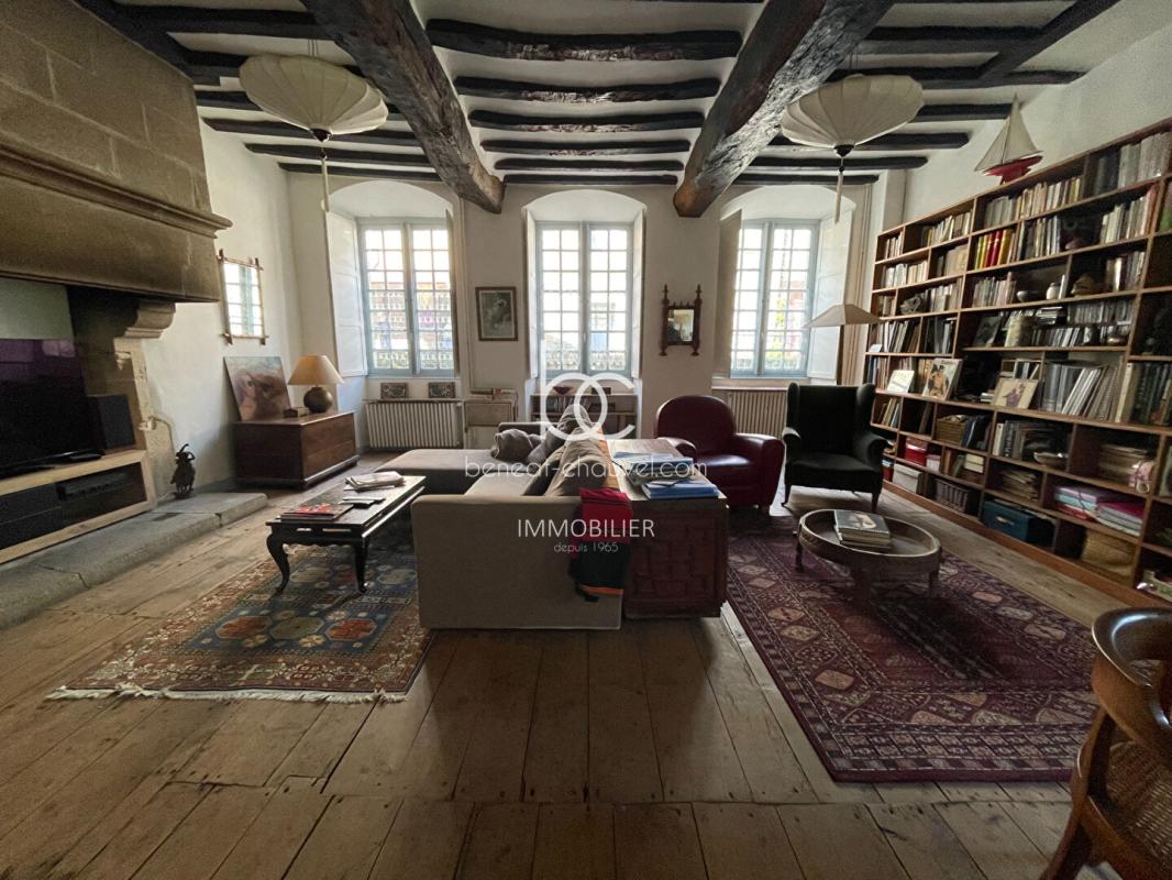 Le charme des lieux de ce manoir ne pourra qu’opérer pour vous qui aimez la pierre et l’espace de verdure. Le jardin magnifique en espalier avec ses murets, la serre fixe et le petit étang invitent à la contemplation, l’atelier de 70 m² à la créativité. La grandeur et les beaux volumes des pièces pourraient permettre l’accueil d’hôtes. Il comprend au rez-de-chaussée : grande entrée avec cheminée monumentale, grand salon avec cheminée monumentale, salle à manger avec coin cuisine aménagé et équipé avec poêle à bois, dégagement, salle d’eau-W.C avec rangement, rangement également sous escalier. – Au demi-niveau : W.C avec lavabo. – Au premier étage : chambre avec salle de bains privative avec placard, deux chambres avec salle d’eau-W.C commune, dégagement avec rangement. – Au deuxième étage : chambre avec placard, salle de bains-W.C, rangement, chambre, chambre avec cheminée (jamais utilisée) avec rangement. Deux Terrasses dont une couverte. Atelier. Sous-sol avec rangement, cave, chaufferie. RARE.