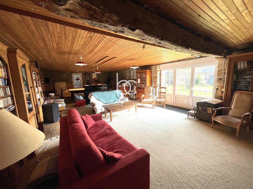 Dès l’entrée, vous découvrirez une pièce de vie conviviale qui s’ouvre sur une vaste cuisine avec son espace salle à manger, créant un coeur de maison idéal pour les réceptions. Le rez-de-chaussée est parfaitement agencé avec une suite comprenant une chambre et sa salle d’eau privative avec WC, ainsi qu’une seconde chambre équipée d’une douche et d’un WC indépendant. Dans le prolongement de l’habitation, une impressionnante salle de réception de 95 m², faisant actuellement office de salon et salle de billard, offre des volumes spectaculaires complétés par un grenier aménageable de même surface au sol, ouvrant la voie à de multiples projets d’aménagement.