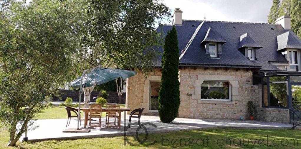 1) Une maison principale : Rdc : hall, séjour-salon avec cheminée, cuisine équipée et salle à manger, chambre, salle de bains+douche, wc, buanderie, chaufferie, cave. Etage : 3 chambres, bureau en mezzanine, salle d’eau, wc dressing.