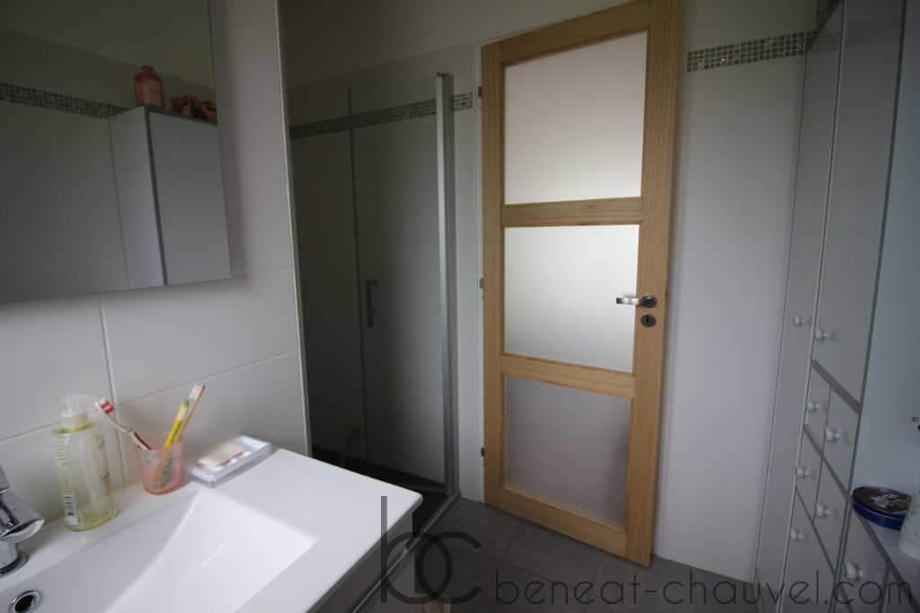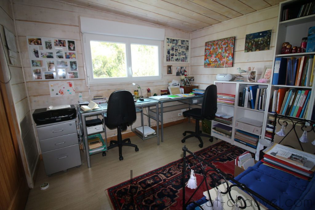 Celle-ci offre : Salon/séjour avec cheminée donnant sur jardin sans vis-à-vis, cuisine équipée et aménagée, arrière cuisine, wc, un coin nuit avec chambre, bureau, salle d’eau, wc et dressing.