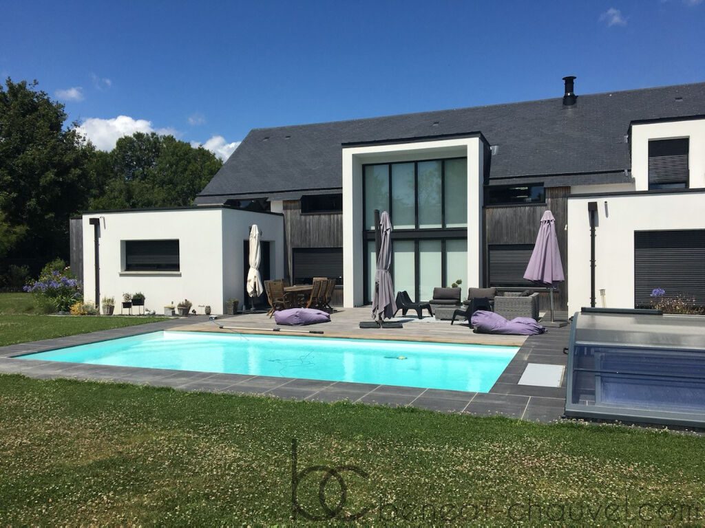 RARE – Dans un village authentique de la Presqu’île de Rhuys, cette maison d’habitation contemporaine de 320 m² au sol. Elle sera idéale pour une résidence principale comme secondaire. Elle comprend : Au rez-de-chaussée : hall d’entrée avec penderie, W.C avec lave mains, cuisine aménagée et équipée, cellier avec porte de service, séjour-salon de 71.77 m², suite parentale avec dressing, buanderie, W.C suspendu, chambre avec salle d’eau, atelier, local technique, grand garage, cave. A l’étage : palier-mezzanine, chambre, salle de bains, salle d’eau, W.C suspendu, deux chambres, deux autres chambres avec chacune salle d’eau-W.C. Piscine chauffée de 8 m x 4m, Cabane à vélos. Le Jardin clos et paysagé d’une surface de 1 900 m² environ sera votre havre de paix !