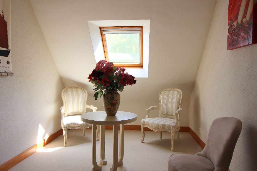 Etage: Mezzanine, chambre avec debarras, salle d’eau, w.c., 2 chambres dont une avec placard