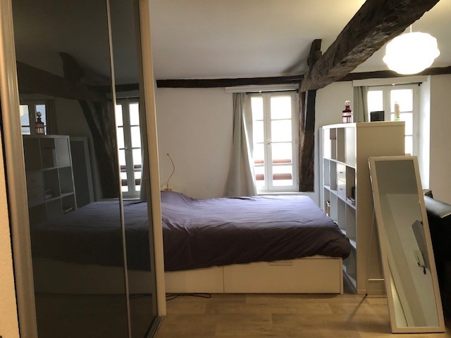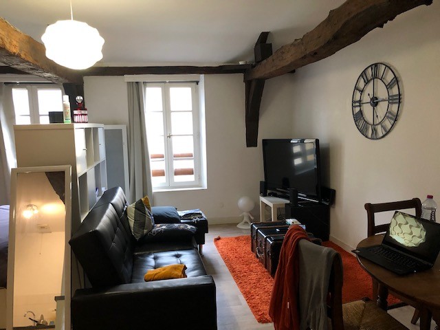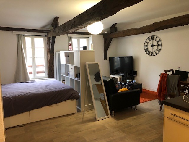 Plein cœur du centre ville, Bel appartement meublé de type studio offrant séjour avec placard, cuisine ouverte aménagée et équipée (réfrigérateur, micro-onde, plaques vitrocéramiques), cellier, salle d’eau avec wc.