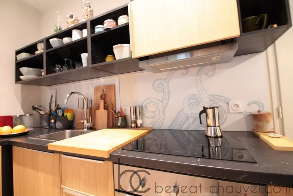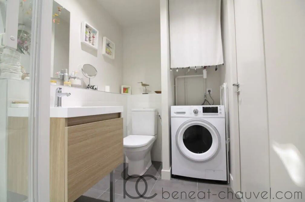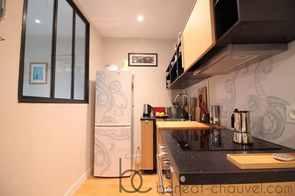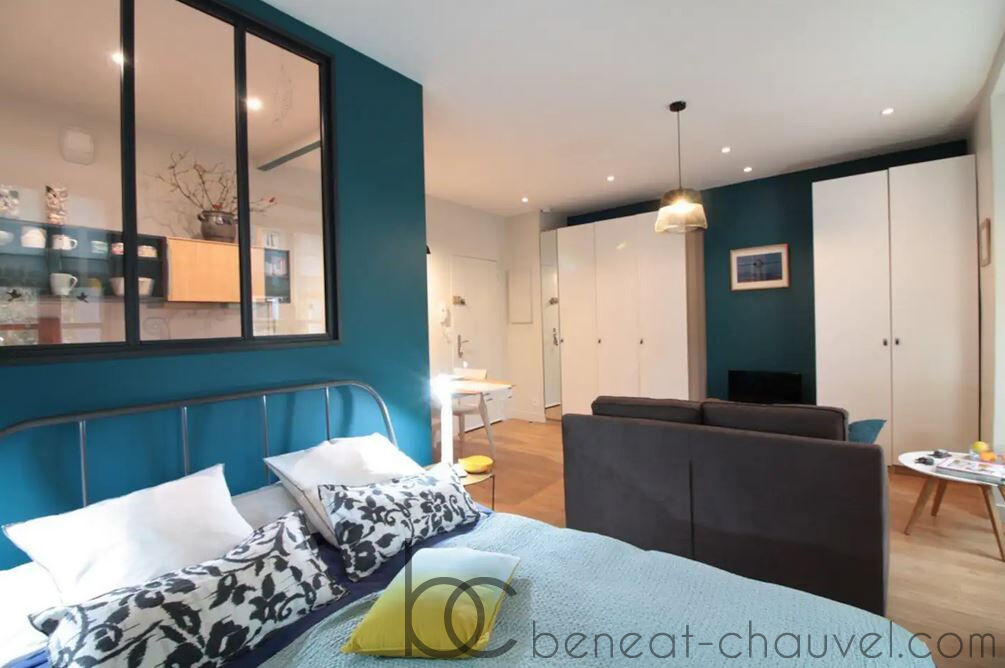 Il est composé d’un séjour offrant une belle vue plein sud sur un hôtel particulier au calme, d’un coin nuit, d’une cuisine aménagée et équipée, d’une salle d’eau avec wc, nombreux rangements.
