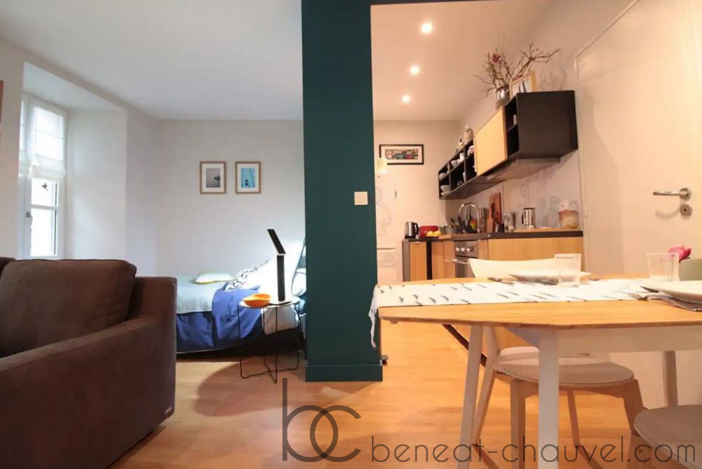 Exclusivité ! Vannes intramuros dans rue piétonne, ce studio situé dans un immeuble à pan de bois a été entièrement rénové. Il est proposé meublé.