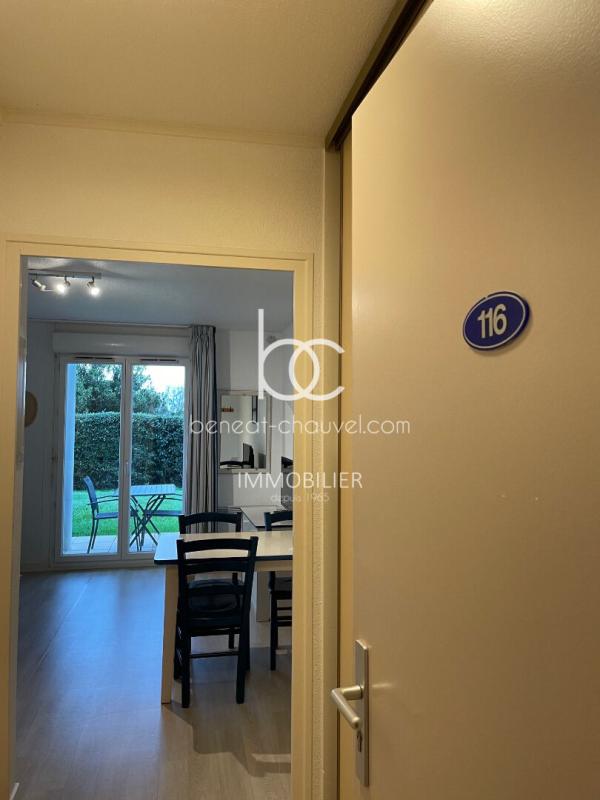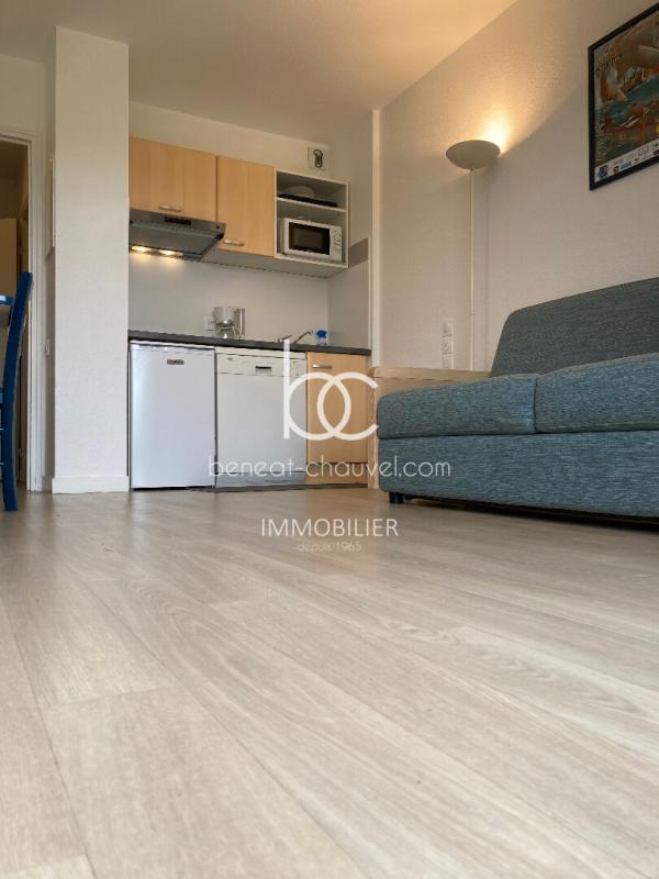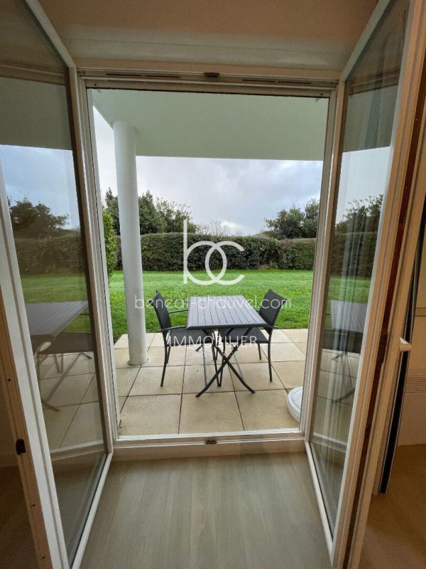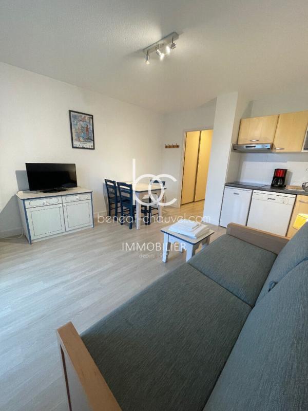 Exclusivité – Joli studio en rez-de-chaussée sans aucun vis-à-vis. Exposé plein Sud, vue sur la végétation alentours. Situé dans une résidence de tourisme, ce pied-à-terre permet une échappée dans un havre de paix à deux pas de mer et de la plage du Vran.